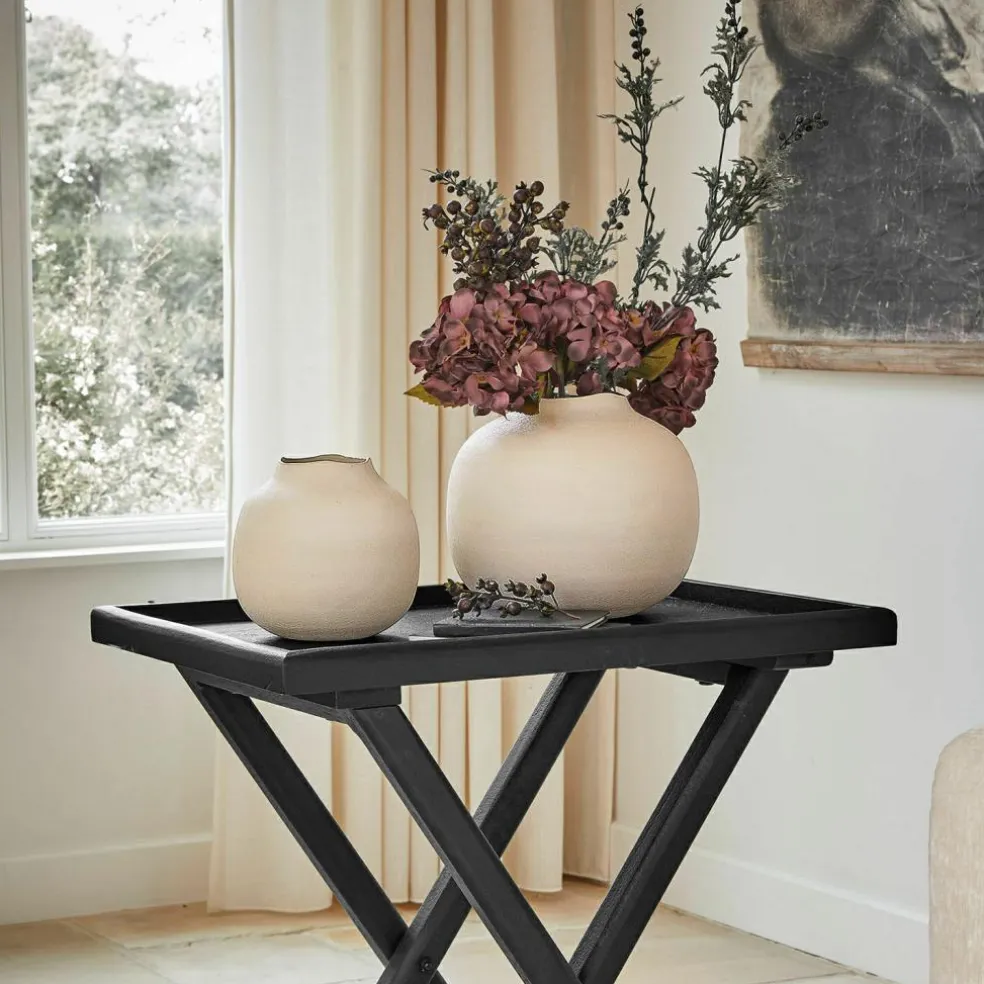 Avec ce lot de deux vases, faites entrer la beauté de l’artisanat brut dans votre maison. Les silhouettes sphériques et les bords légèrement ondulés font penser qu’il s’agit de céramique façonnée à la main, tandis que la surface finement texturée imitant la pierre crée un toucher merveilleux et une profondeur naturelle. En réalité pourtant, les vases sont en aluminium léger. Cette caractéristique surprenante leur confère une polyvalence particulière. Qu’ils soient utilisés individuellement pour attirer l’attention ou pour former un ensemble harmonieux, ces vases dégagent une sérénité intemporelle et un raffinement discret. L’idéal pour les intérieurs modernes et classiques.