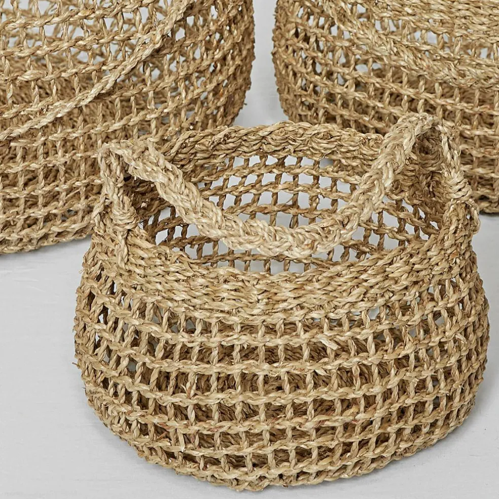Ce magnifique ensemble de corbeilles en zostère est l’alliance parfaite d’une esthétique naturelle et d’une fonctionnalité pratique. La structure tressée avec son motif ouvert donne un aspect léger et aéré et confère à chaque pièce une ambiance décontractée. Les trois tailles disponibles permettent une utilisation polyvalente, que ce soit pour ranger des jouets, du linge ou comme élément de décoration élégant pour les plantes et les accessoires d’intérieur. Les anses robustes permettent de transporter les corbeilles sans effort. Leur finition naturelle et chaleureuse s’harmonise avec de nombreux intérieurs, du style shabby chic au style maison de campagne en passant par le style épuré moderne.