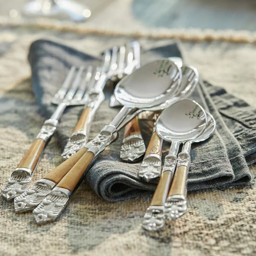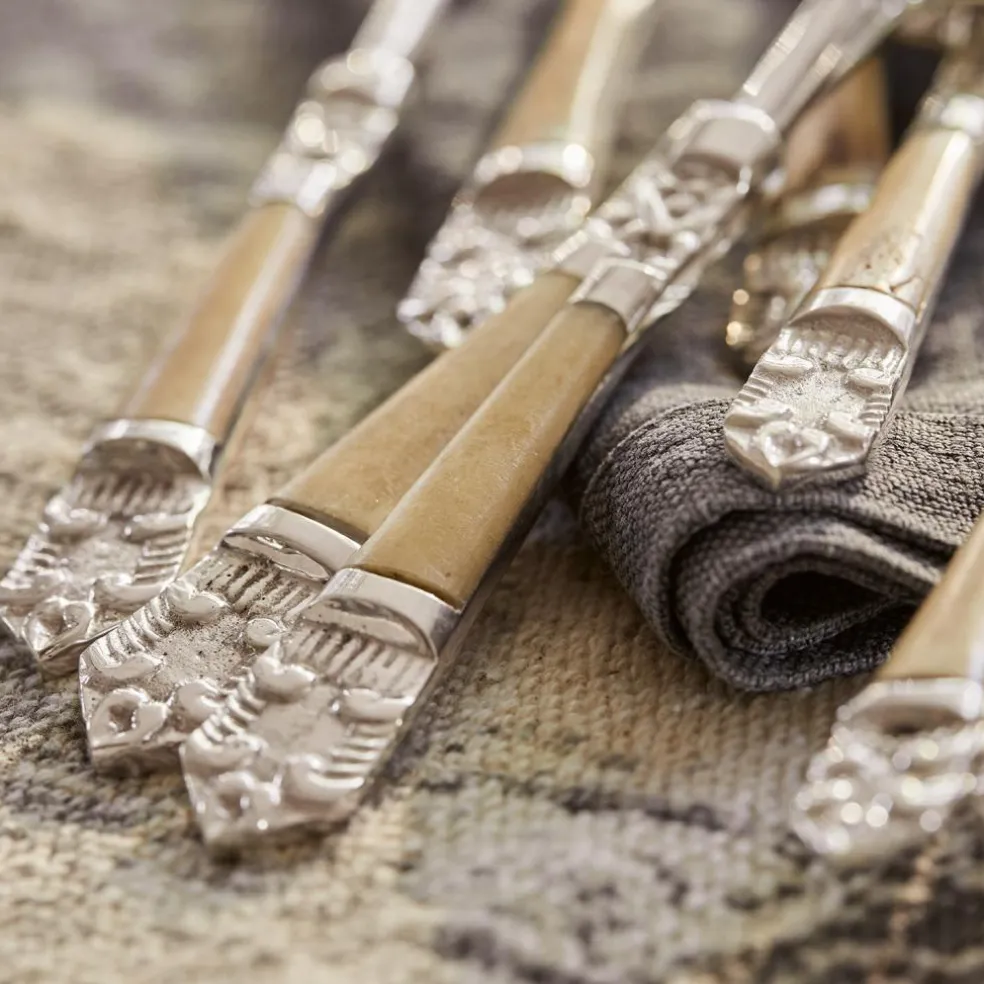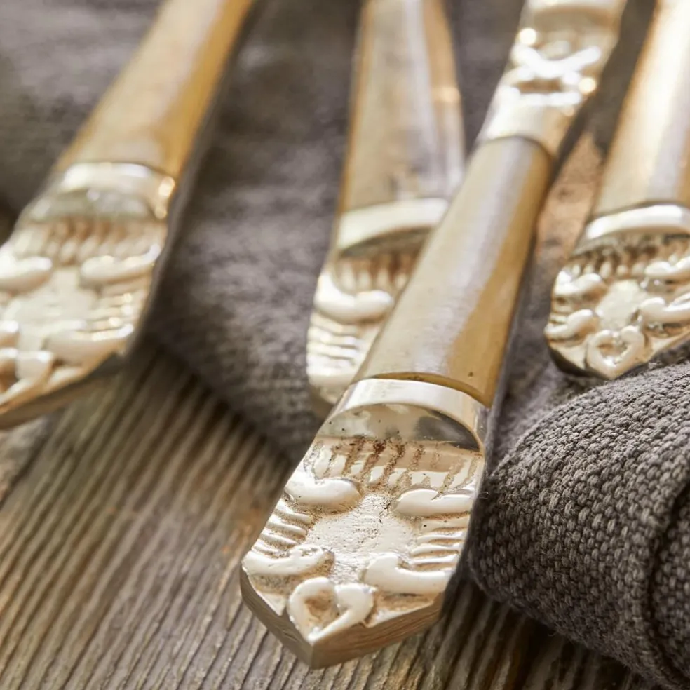 Ce lot de couverts en inox et laiton séduit par sa finition de grande qualité. Les manches richement décorés présentent un élément en corne de buffle d’eau véritable qui confère à chaque lot un caractère unique. Chaque élément en corne a des nuances de couleurs et des veines qui lui sont propres. Ce superbe lot de couverts ne devrait manquer dans aucune cuisine ! Il apporte une note élégante à votre table et ne manquera pas de susciter la convoitise de vos convives. Les manches somptueusement décorés flattent le regard et sont faciles à prendre en main.