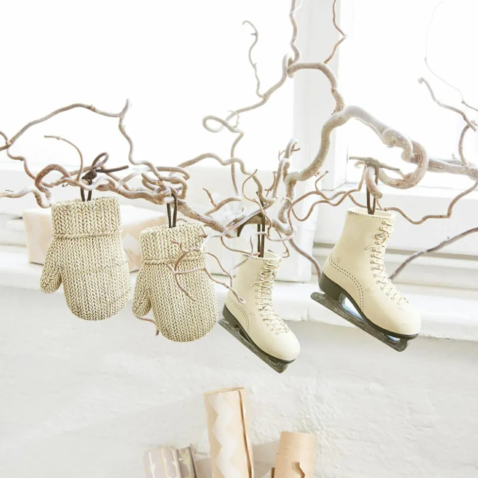 Nombreux détails soignés. Motifs d’hiver en résine synthétique. Respirent la joie des activités hivernales. Ces patins à glace et moufles miniatures sont de véritables petits bijoux qui vous rappelleront de joyeux moments passés sur les lacs gelés en hiver. Des œillets aux patins jusqu’aux mailles des moufles qui ressemblent vraiment à de la laine, ces ravissants petits objets sont très réalistes. Laissez-vous séduire par ces décorations qui embelliront vos branches, guirlandes et votre sapin de Noël ! Accrochées à un support mural, elles apporteront une touche hivernale à votre intérieur et vous feront d’autant plus apprécier la saison froide de l’année.