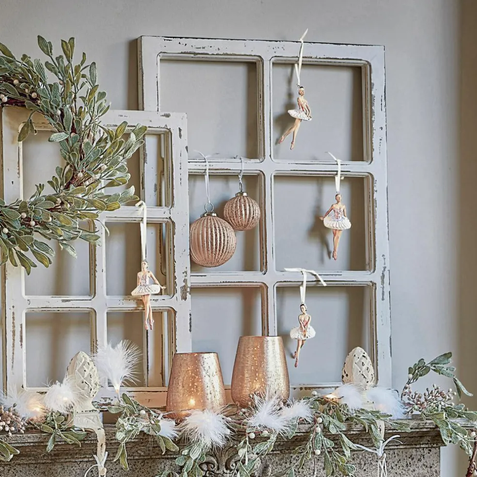 Un charme nostalgique envoûtant dans un stylé des années 40. Ces figurines de ballerines sont travaillées soigneusement et peintes à la main. Des détails étincelants ornent leur habillement. Quatre ballerines sublimes qui tournoient dans les airs autour de votre sapin. L’ensemble est composé de quatre figurines dans deux postures différentes. L’expression du visage sublime et les détails magnifiques du costume raviront tous les amoureux d’intérieurs romantiques. Du visage aux ornements du corset et de la jupe en tulle en passant par la brillance des chaussures de ballet, ces ballerines sont de vrais petits chefs-d’œuvre.
