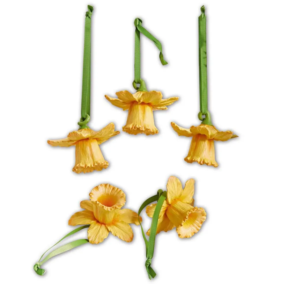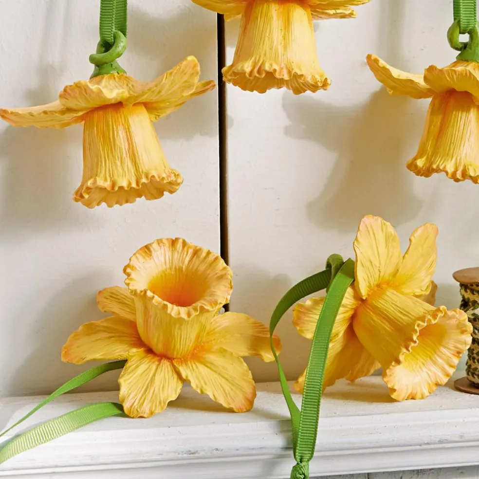 Des narcisses plus vrais que nature ! Résine synthétique peinte à la main. Un ensemble printanier avec des liens au coloris assorti. Cet adorable lot de cinq fleurs va faire entrer la nature dans votre maison ! Ces jolies fleurs très réalistes sont de jolies touches de couleur pour votre déco. Parfaites pour Pâques, elles mettront joliment en valeur un intérieur champêtre. Sur une patère, une guirlande de fleurs ou par petites touches, elles seront les garantes de votre bonne humeur. Et comme elles sont déjà équipées de jolis liens, vous pourrez commencer à décorer sans attendre !