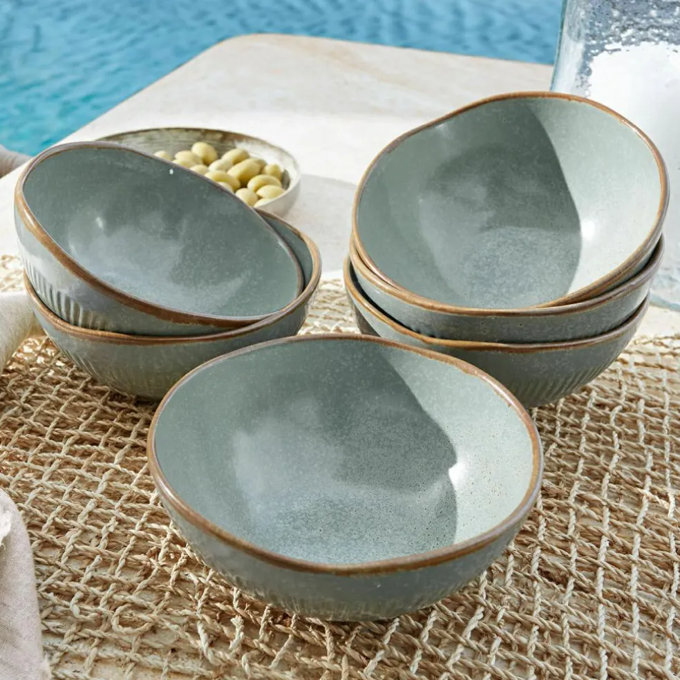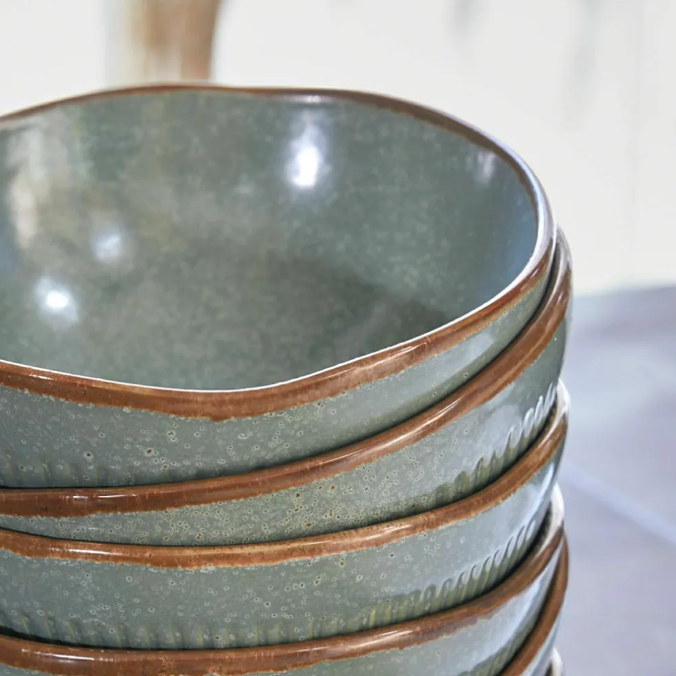 Ce lot de 6 bols en grès amène la beauté de l’art artisanal dans votre maison. La forme volontairement irrégulière et le motif finement rainuré confèrent à ces bols un aspect naturel et authentique qui ravit l’œil. Chaque pièce de ce lot est unique, ce qui confère à la vaisselle un charme particulier et enrichit votre décoration de table d’une touche d’individualité et de légèreté. Que ce soit pour tous les jours ou pour des occasions spéciales, ces plats apportent une élégance rustique dans votre cuisine et sur votre table. Le grès durable assure en outre un toucher agréable et s’harmonise à merveille avec différents styles.