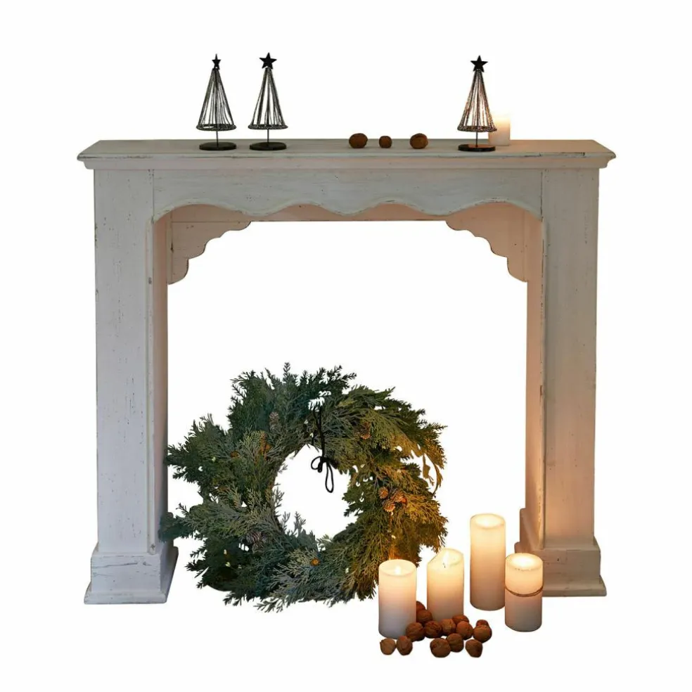 Ce superbe manteau de cheminée blanc vieilli, orné d’une finition blanc vieilli, est bien plus qu’un simple élément décoratif. Ses lignes douces et galbées et sa forme simplement épurée créent une atmosphère chaleureuse et accueillante. Pour attirer les regards dans le salon ou dans la chambre à coucher pour une touche romantique, ce manteau de cheminée invite le charme des temps anciens chez vous. Sa confection de grande qualité et son style classique en font un véritable objet d’art qui allie élégance et chaleur. Profitez-en tel quel ou décorez-le d’une guirlande, de bougies ou d’un vase.