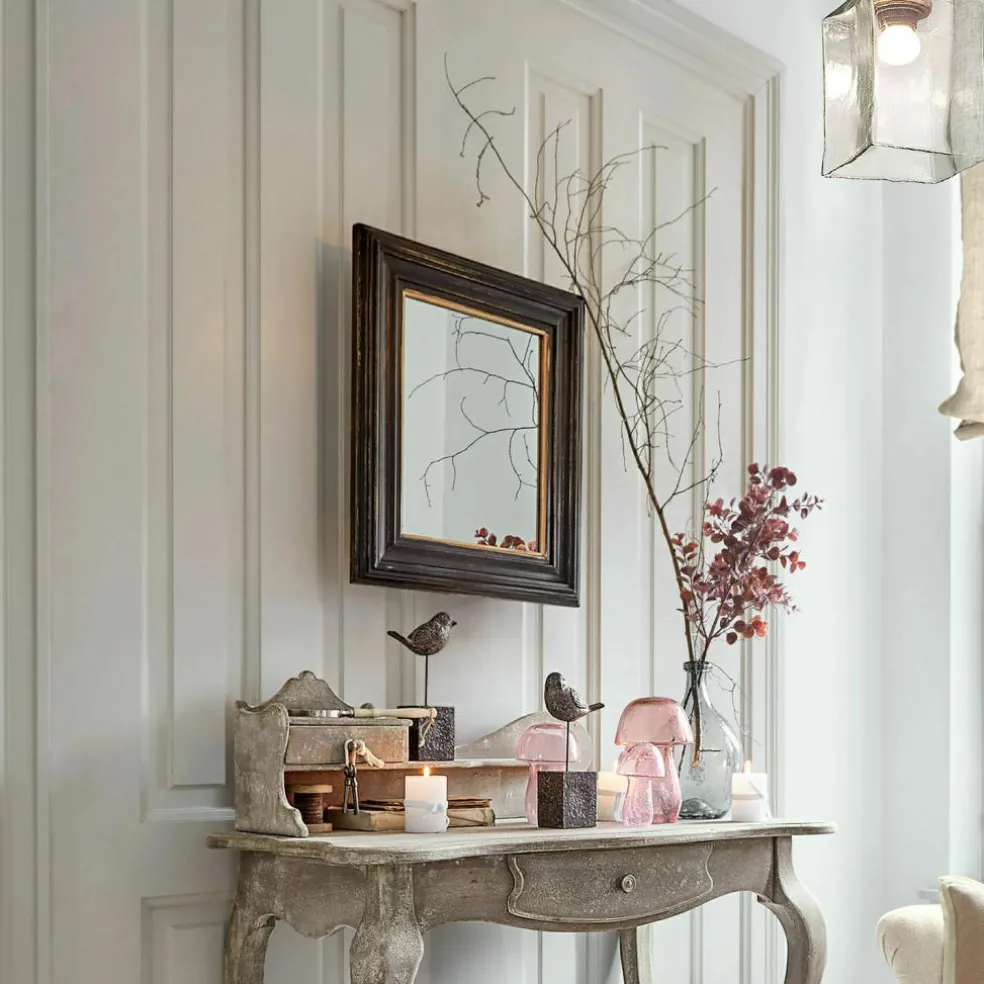 Laissez-vous séduire par l’élégance intemporelle de ce miroir rectangulaire. Le large cadre en bois, rehaussé d’une finition noir vieilli et de touches dorées, n’est pas seulement solide, mais aussi hautement décoratif. Il confère à votre pièce une atmosphère raffinée et élégante. Grâce aux multiples possibilités d’accrochage, vous pouvez placer le miroir aussi bien à la verticale qu’à l’horizontale pour l’intégrer parfaitement dans votre intérieur. Plus qu’un simple accessoire pratique, ce miroir est un élément artistique qui enrichit chaque pièce et lui confère une touche particulière.