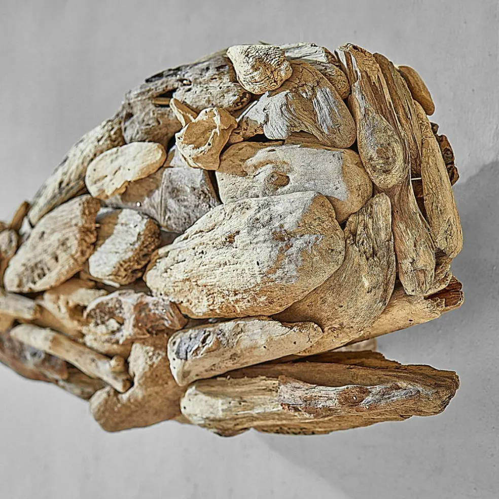 Cette ambiance maritime n’est pas un pur hasard, puisque cette magnifique baleine stylisée est confectionnée à partir de véritable bois flotté. Cette œuvre imposante faite à la main fera souffler un air marin à la maison, tout en la décorant. Installé sur une commode du salon, ce chef d’œuvre répandra son charme et sa beauté dans tout style d’intérieur. Prenez-vous à rêver de l’océan et apportez une note de raffinement et de vacances à la mer à votre maison !