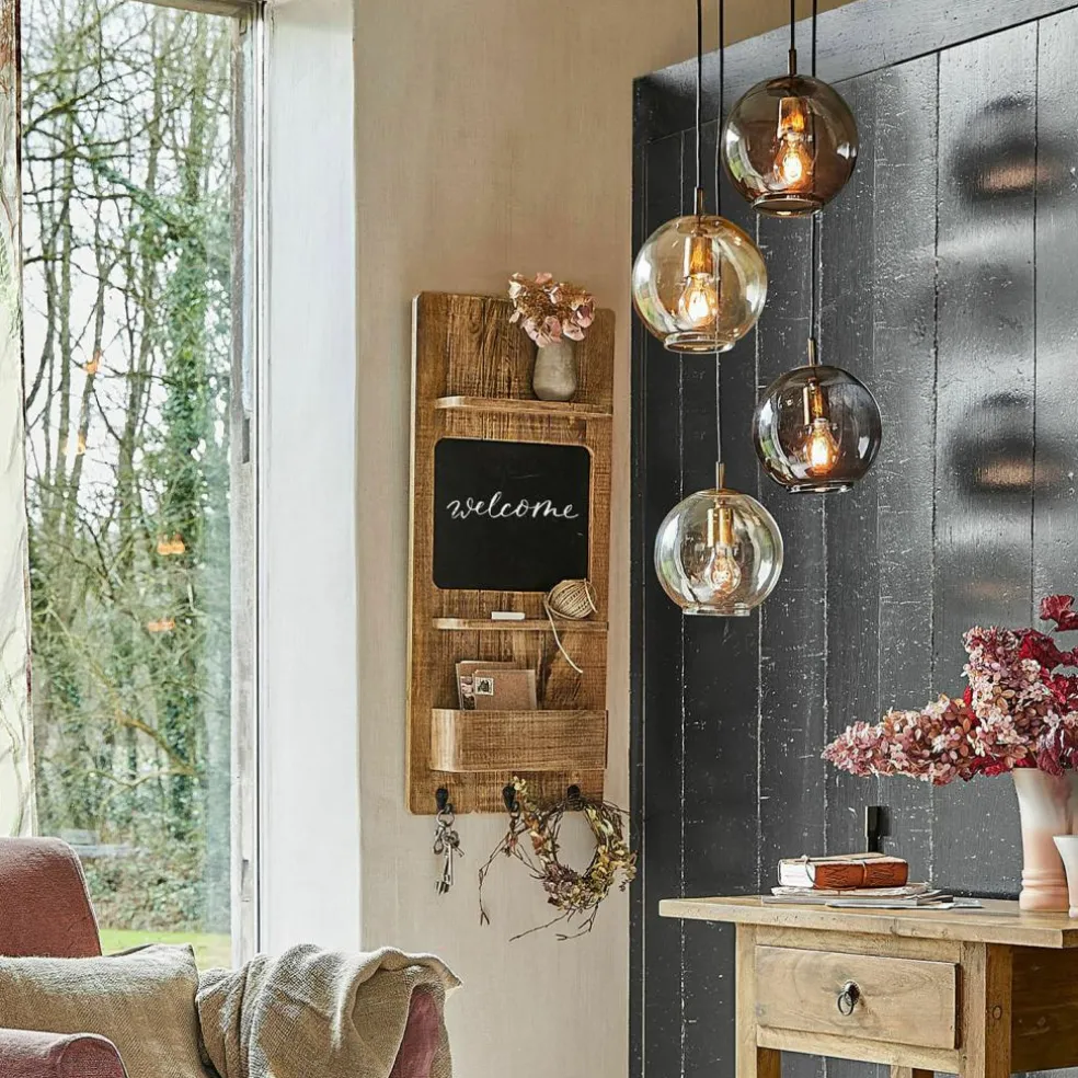 Un tableau mural… et bien plus encore ! C’est un véritable organiseur en bois de manguier marqué par un joli veinage qui décorera bientôt votre mur et vous aidera à organiser votre quotidien. Le tableau vous servira à laisser des messages à la craie ou à noter des choses que vous ne voulez pas oublier. La petite étagère au-dessus servira de support pratique pour vos lunettes ou pour de petites décorations, tandis que le compartiment en-dessous est idéal pour y glisser des lettres, des cartes ou votre téléphone portable. Trois crochets métalliques viennent compléter le tableau et permettent d’y suspendre des trousseaux de clés ou des sacs. Cet accessoire pratique et décoratif sera du plus bel effet dans une cuisine ou une entrée de style maison de campagne. La craie n’est pas comprise dans la livraison.