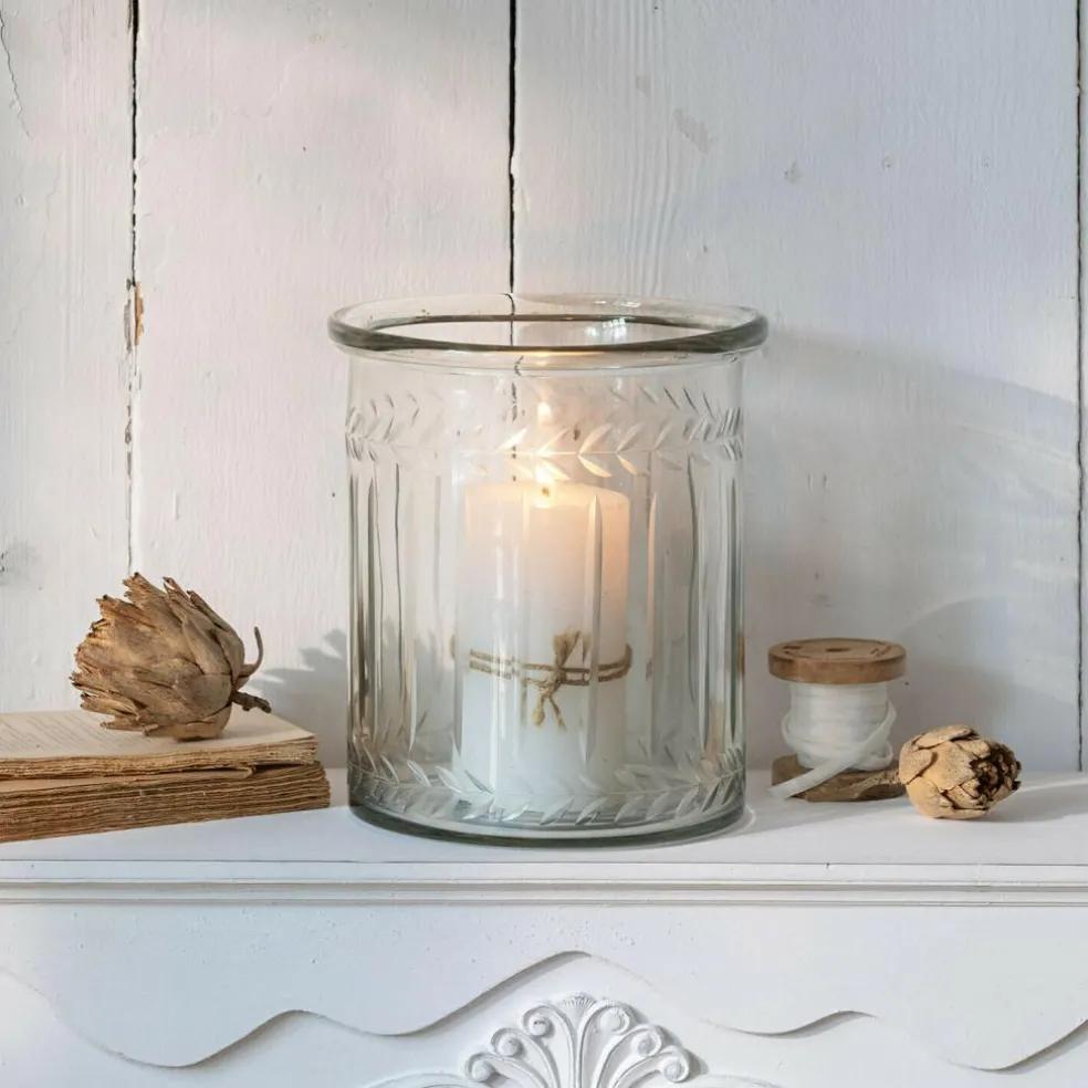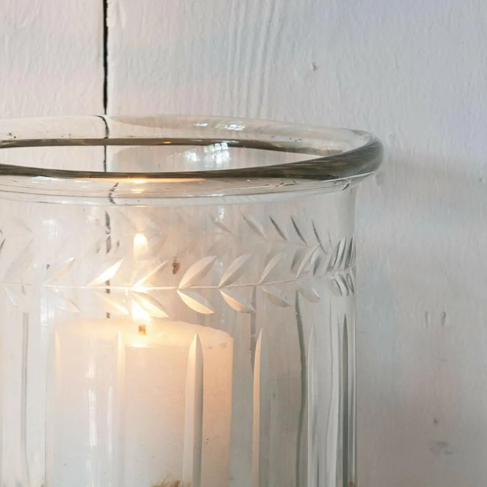 Lorsque la lumière rencontre le verre, la magie opère , la preuve en est avec ce photophore et sa fine gravure de rinceaux de feuilles alignés. Les creux réfractent la lumière des bougies en fines lignes et créent une atmosphère presque poétique. La forme légèrement évasée et le bord incurvé confèrent à la pièce une silhouette douce, tandis que le verre transparent dégage un charme d’atelier nostalgique. Grâce au travail de soufflage à la bouche, chaque photophore porte en lui de subtiles différences , de petites irrégularités qui soulignent son caractère unique et en font un objet particulièrement vivant. Qu’il soit placé seul ou en groupe, le photophore confère un raffinement discret à n’importe quelle ambiance.