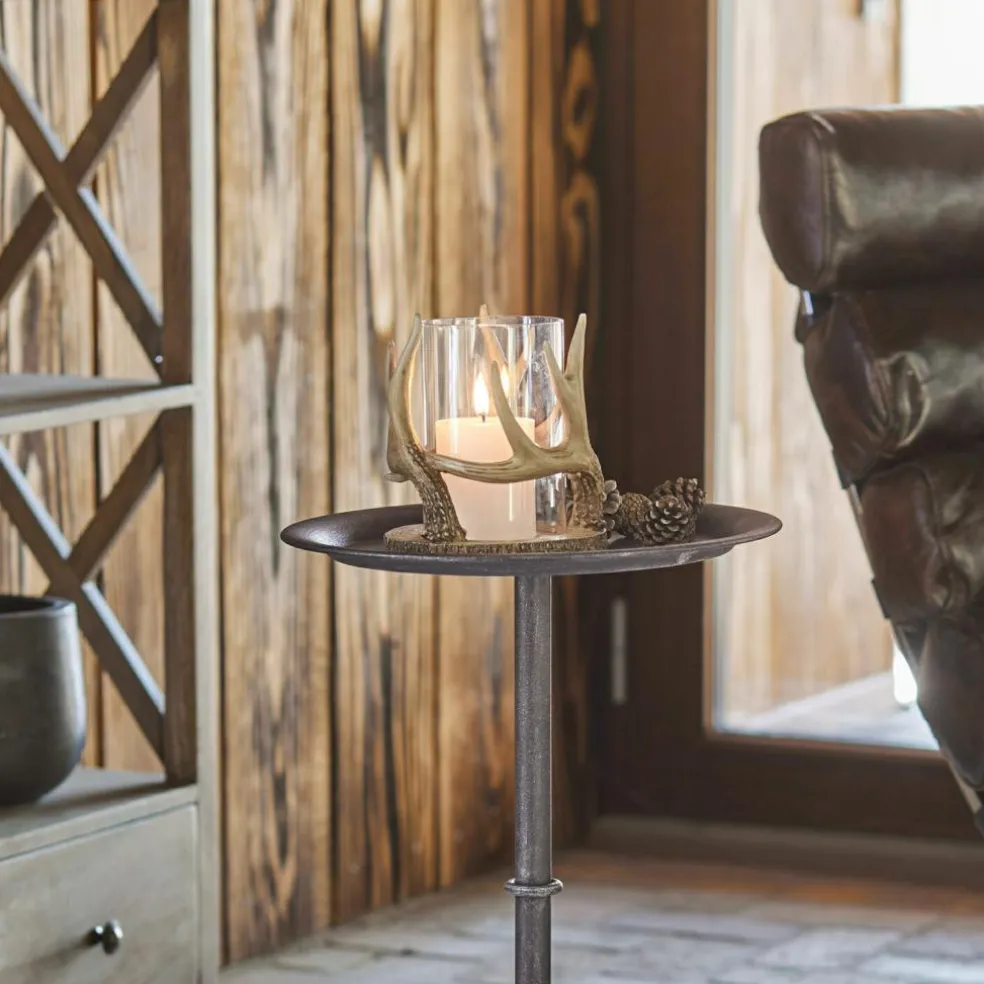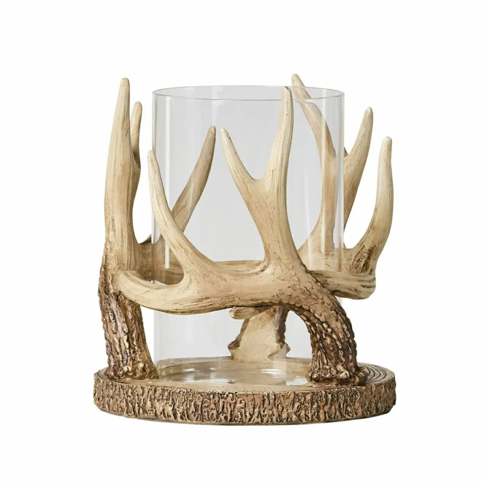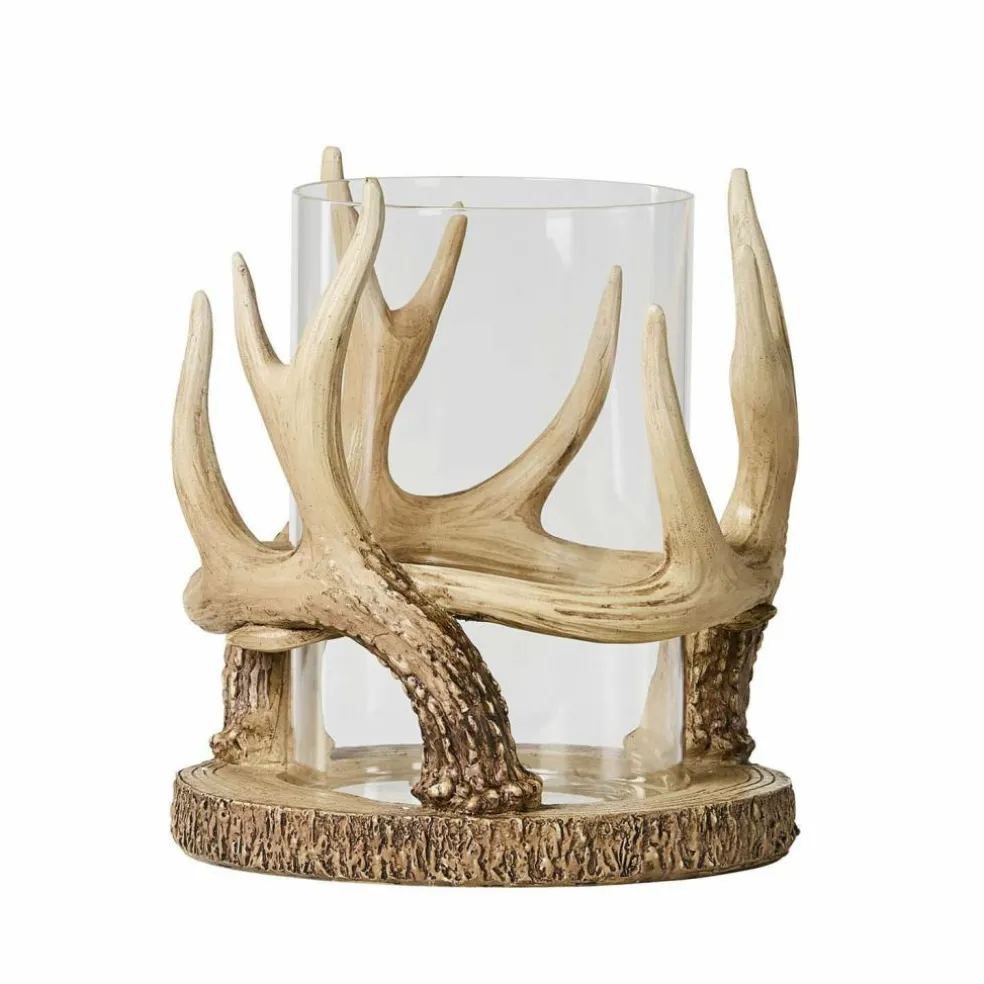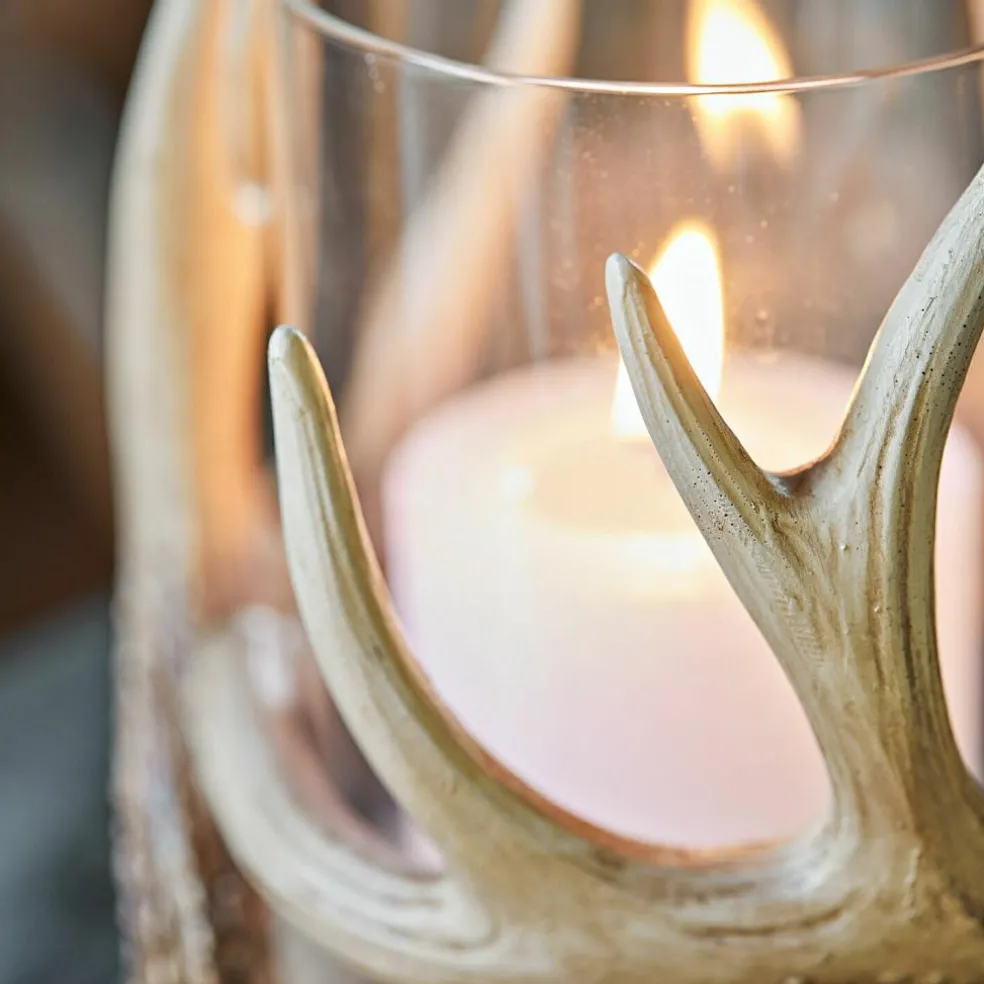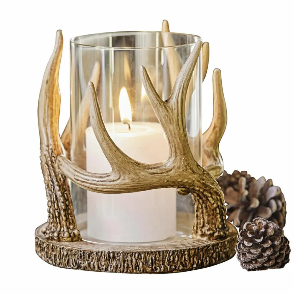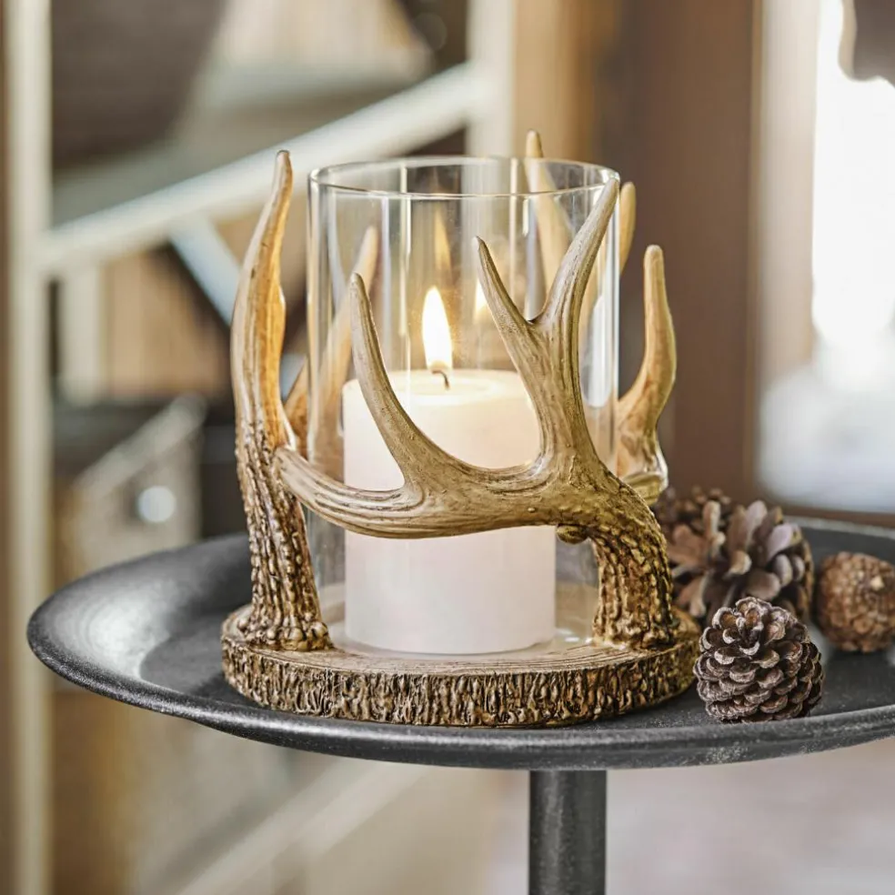 Embellissez votre intérieur avec cet exquis photophore alliant nature et artisanat à la perfection. La base et les ornements effet bois de cerf sont en résine synthétique de grande qualité, soigneusement peints à la main afin de mettre en valeur la texture et les couleurs des véritables bois de cerf. Un élément en verre transparent lui apporte une belle touche de modernité, permettant ainsi de placer et d’allumer facilement vos bougies. Sur la table de la salle à manger pour un dîner romantique ou comme éclairage d’ambiance sur un buffet, ce photophore dégage une atmosphère chaleureuse et accueillante qui s’accorde particulièrement bien avec le style champêtre.
