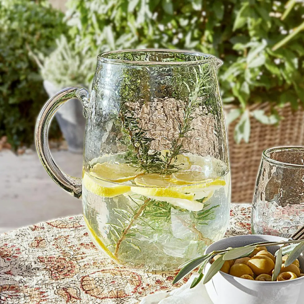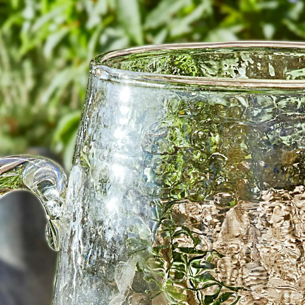 Verre soufflé à la bouche et joliment structuré. Des irrégularités intentionnelles lui confèrent un caractère unique. S’utilise pour vos boissons ou comme vase. Servez avec style de l’eau, des jus ou une limonade bien rafraichissante à vos amis en visite. Dans le jardin ou durant le brunch du dimanche, ce joli pichet est l’accessoire que l’on aime avoir sur la table. De style classique, il s’intègre à toutes les ambiances. N’hésitez-pas à l’utiliser également comme vase décoratif, par exemple avec un magnifique bouquet de fleurs des champs.