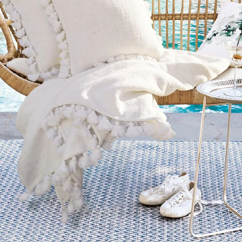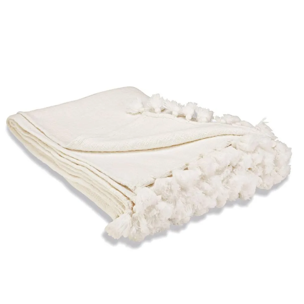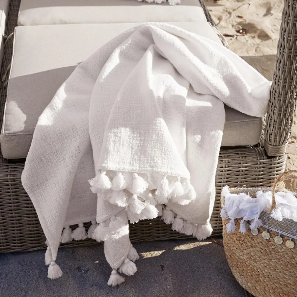 Style et confort tout au long de l’année. En tissu haut de gamme en coton : léger, respectueux de la peau et très agréable à toucher. S’intègre à tous les styles de décorations d’intérieur. Ce plaid en tissu de coton haut de gamme vous accompagnera à chaque saison : sa matière naturelle est rafraîchissante ou bien chaude selon la température, assurant ainsi un climat de bien-être constant. La couverture est également très légère, douce et très agréable même pour les peaux sensibles. De petites franges à pompons aux extrémités apportent une touche décorative. Un accessoire pour toutes les situations et tous les styles d’intérieur : moderne, classique ou encore rustique.