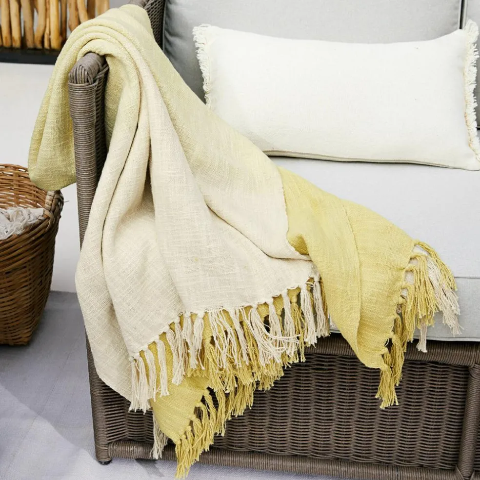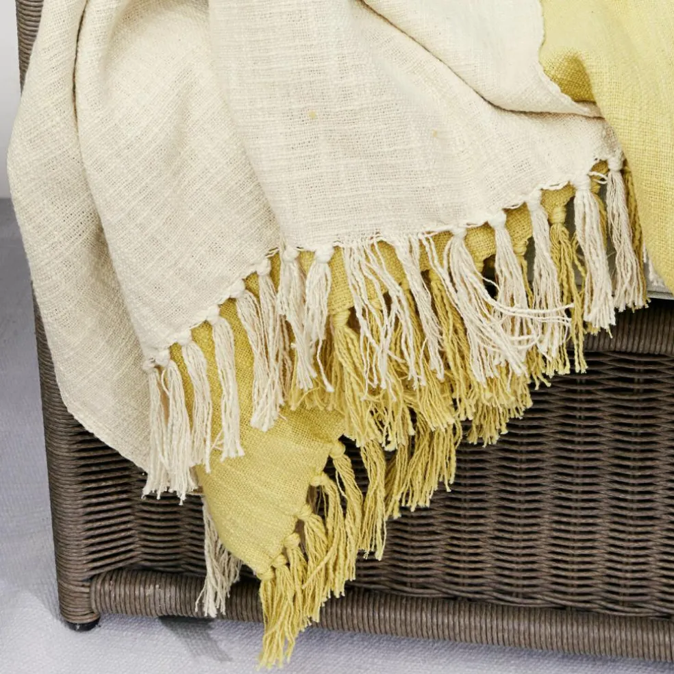 Avoir des accessoires d’intérieur qui correspondent à ce que l’on s’imagine est décisif pour le sentiment de bien-être personnel. Grâce à ce plaid, vous ajouterez non seulement une dose supplémentaire de confort à votre pièce, mais aussi une touche pleine de caractère. Son dégradé de couleurs joue le rôle principal dans cette mise en scène et est tout aussi joli d’un côté que de l’autre. Les deux coloris assortis créent une esthétique unique. Le tissu naturel en coton, avec son relief brut plein de caractère, promet un toucher agréable. Ce plaid est tout doux sur la peau tout en assurant une température agréable grâce à ses propriétés respirantes. Il est également fin et léger, ce qui le rend idéal en toutes circonstances. Quoi de mieux que de s’enrouler dans ce plaid et de profiter de moments agréables sur le canapé ou la terrasse. Vous ne serez même pas contraint de vous en passer en vacances : il trouvera certainement une petite place dans votre valise.