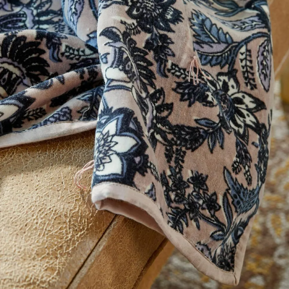 Plongez dans le confort luxueux de ce plaid confectionné à la main en velours de coton élégant. Chaque détail, des imprimés artistiques aux fils joliment cousus, témoigne d’un artisanat de très grande qualité et d’un sens incomparable de l’esthétique. L’avant est orné d’un motif floral et coloré qui attire tous les regards avec ses coloris délicats et ses détails d’une grande finesse. L’arrière est lui uni, ce qui confère au plaid une élégance intemporelle et qui permet une utilisation polyvalente. Comme couverture pour se réchauffer sur le canapé ou comme élément décoratif dans la chambre à coucher : ce plaid allie fonctionnalité et un sens incomparable du style et de la qualité.