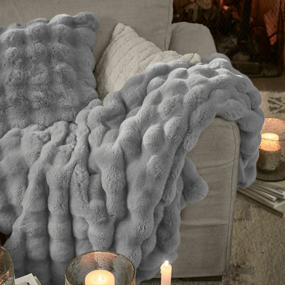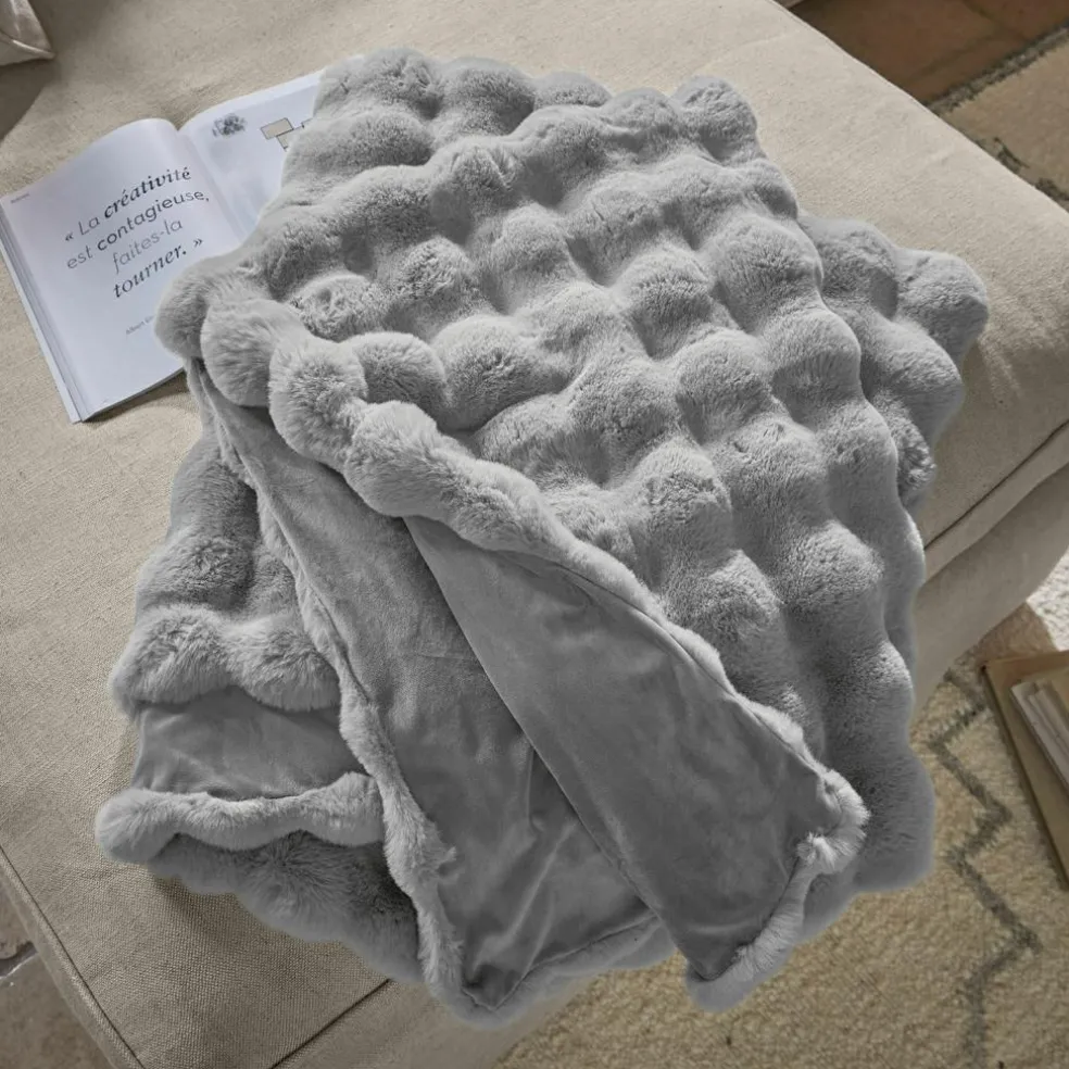 Laissez-vous séduire par ce plaid luxueux, qui allie style et confort à la perfection. Avec une face en peluche et l’autre en polaire moelleuse, ce plaid offre une double dose de douceur, pour une sensation agréable au moindre contact. La fausse fourrure haut de gamme présente une texture douce et moelleuse qui donne envie de s’y blottir pour des heures de détente. Que ce soit pour accessoiriser élégamment votre canapé ou pour vous tenir chaud lors des fraîches soirées, ce plaid est absolument incontournable !