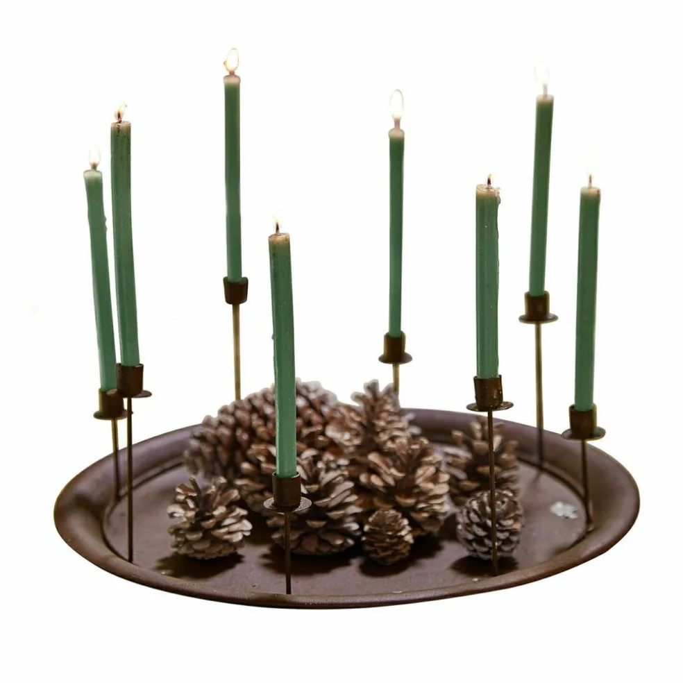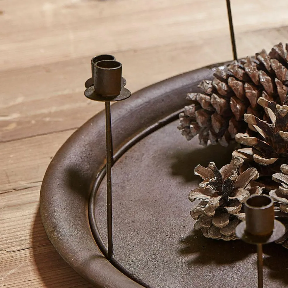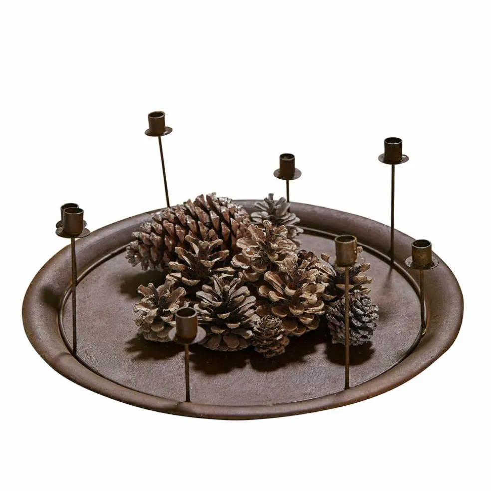 L’effet rouille rustique confère au plateau un charme nostalgique qui rappelle les temps passés tout en étant intemporel et moderne. Grâce à ses huit bougeoirs, ce plateau offre suffisamment de place pour des bougies longues qui créent un éclairage d’ambiance. La surface généreuse du plateau invite à des décorations créatives, que ce soit avec des branches de sapin et des boules au moment de Noël ou des fleurs fraîches au printemps. La conception robuste en métal haut de gamme garantit une durabilité et stabilité optimales, tandis que le style confère à chaque pièce une note absolument unique. Placez le plateau à bougies sur votre table à manger, votre buffet ou une table d’appoint et profitez de l’ambiance chaleureuse qu’il diffuse. Ce plateau à bougies n’est pas seulement un accessoire fonctionnel, c’est aussi un objet de décoration élégant qui enrichira votre intérieur.