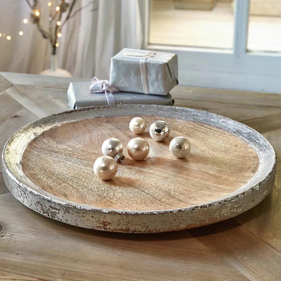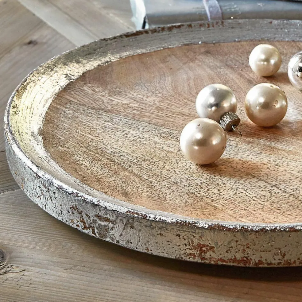 Superbe bois de manguier naturel. Le bord peint à la main forme un contraste parfait. Finition shabby à l’ancienne. Ce plateau massif en bois de manguier diffuse une certaine élégance, mais également le calme et la sérénité de l’extrême-Orient. Il allie le travail artisanal traditionnel à une forme intemporelle empreinte d’une beauté toute naturelle. Le bois de manguier est ici rehaussé d’un discret vernis qui met en valeur son élégance et ses fins motifs sans fioritures. Le bord argenté peint à la main souligne parfaitement ce charmant objet.