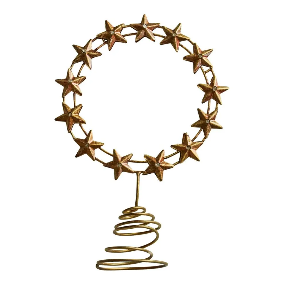 Vous ne cherchez pas un détail quelconque, mais un accessoire digne d’un couronnement pour votre sapin de Noël ? Cette couronne d’étoiles festive se distingue agréablement par son style remarquable. Confectionnée en fer, avec une finition dorée au charmant aspect usé et décorée de petites perles en plastique scintillantes au centre de chaque étoile, cette pointe de sapin joue avec la lumière et la forme. L’impression est presque royale, l’expression délibérément imparfaite. Le pied conique enroulé assure une bonne stabilité au sommet de l’arbre ou sur une étagère comme objet d’art. Un accent brillant qui allie tradition et design audacieux.