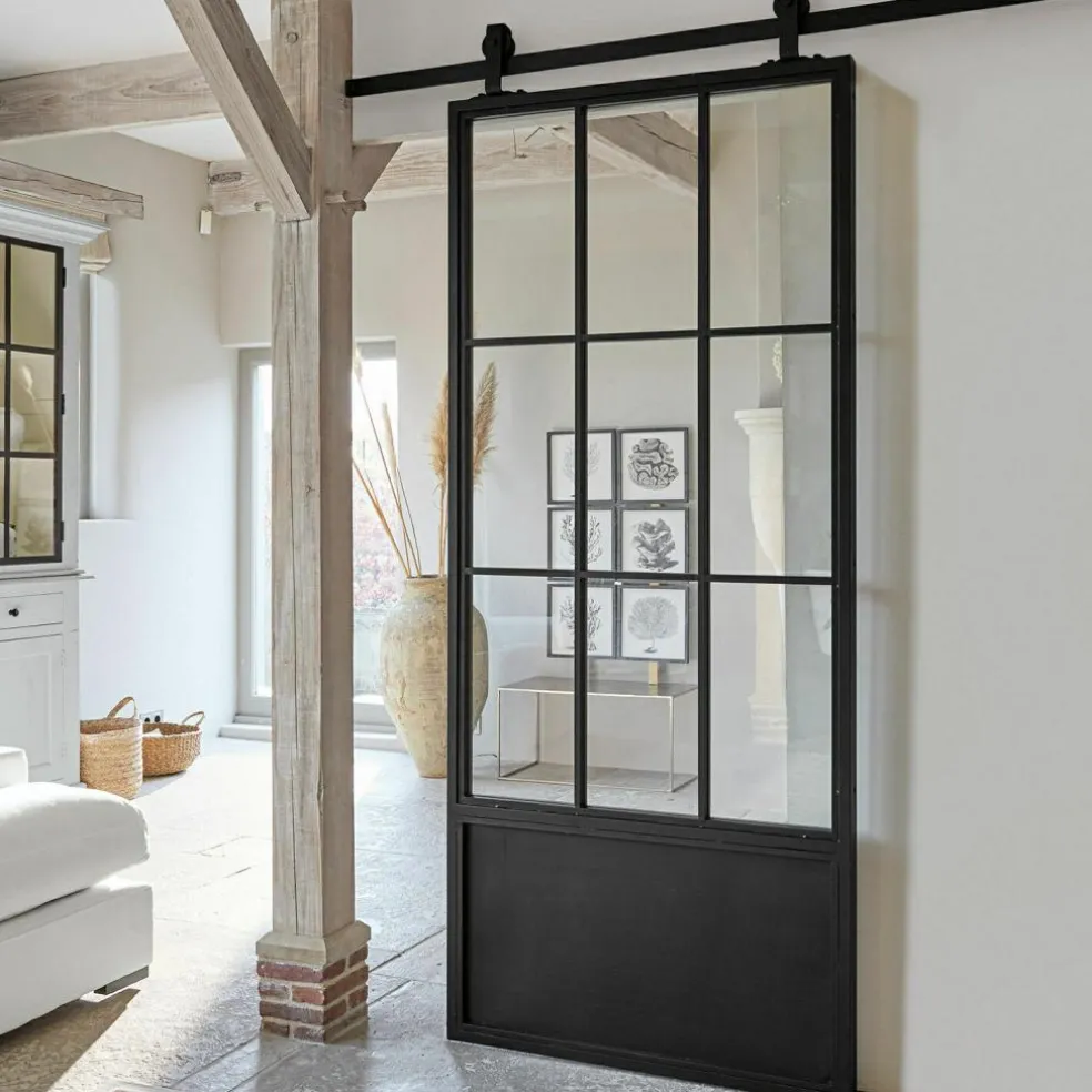 Offrez-vous un peu plus d’intimité, de tranquillité ou d’ordre avec cette magnifique porte coulissante qui comblera toutes vos attentes en matière d’esthétique et de praticité. L’avant et l’arrière présentent les mêmes finitions. Les structures artistiques concentrent le style et l’élégance dans une forme imposante qui n’a pas son pareil. Le métal massif avec une touche industrielle fait revivre les débuts de la culture industrielle occidentale et s’associe à des fenêtres en verre pleines de style. Elles laissent passer la lumière tout en créant de magnifiques jeux d’ombre et de lumière sur les murs et le sol. Créez de nouveaux espaces, des havres de paix et de jolies séparations avec ce petit bijou aussi décoratif que pratique. Vous pouvez par exemple créer un passage vers un dressing dans la chambre à coucher, ou bien séparer la cuisine avec l’évier et le four de la table à manger, ou encore diviser votre grand salon en plusieurs espaces. Aménagez vos espaces intérieurs avec style pour vous offrir un parfait confort.