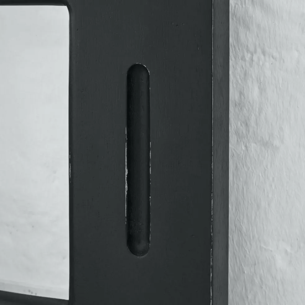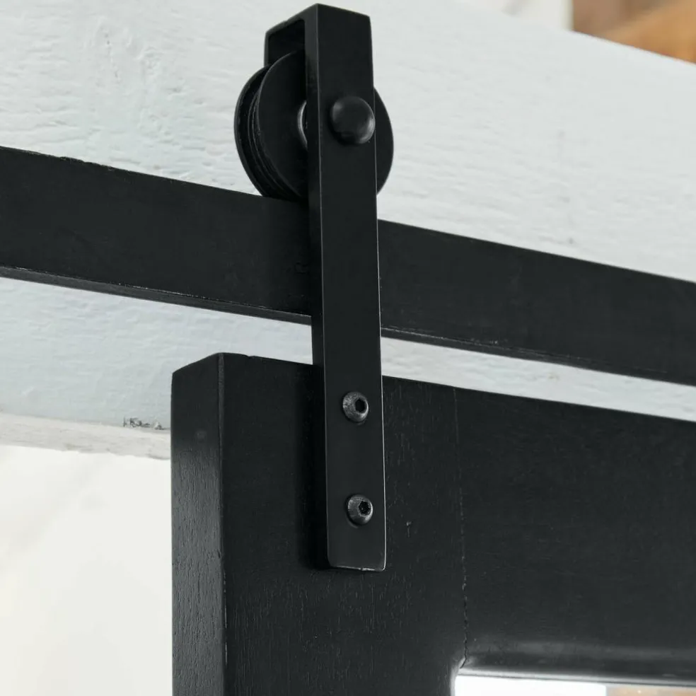 Une porte qui est bien plus qu’une simple séparation de pièce. Le cadre en bois massif d’un noir vieilli profond se détache de manière impressionnante des éléments en verre transparent. Le miroir central se détache de l’ensemble et reflète la lumière de manière fascinante, ce qui agrandit visuellement la pièce. Le rail en métal assure un glissement doux et silencieux et complète le charme industriel. Qu’il s’agisse d’une porte de loft élégante, d’une solution stylée pour les dressings ou d’un accessoire de style dans les pièces à vivre, cette porte coulissante apporte atmosphère et style à chaque intérieur.