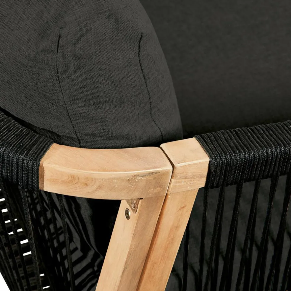Profitez pleinement de l’été et passez de vrais moments de convivialité à l’extérieur grâce à ce salon de jardin élégant et moderne. Le canapé ainsi que les deux fauteuils sont en bois d’acacia haut de gamme certifié FSC, un matériau de choix pour les meubles de jardin de par sa robustesse et sa longue durée de vie. Son revêtement effet corde sur le dossier et les accoudoirs lui confère un style très tendance. Les coussins d’assise et de dossier fournis sont très confortables. Amovibles, résistantes aux intempéries et lavables, les housses des coussins en fibres d’oléfine sont particulièrement élégantes grâce à leur effet chiné. Il ne vous reste plus qu’à choisir entre deux coloris très attrayants. Vous pouvez également compléter votre salon de jardin avec notre canapé réf. 23115 et notre fauteuil réf. 23121.