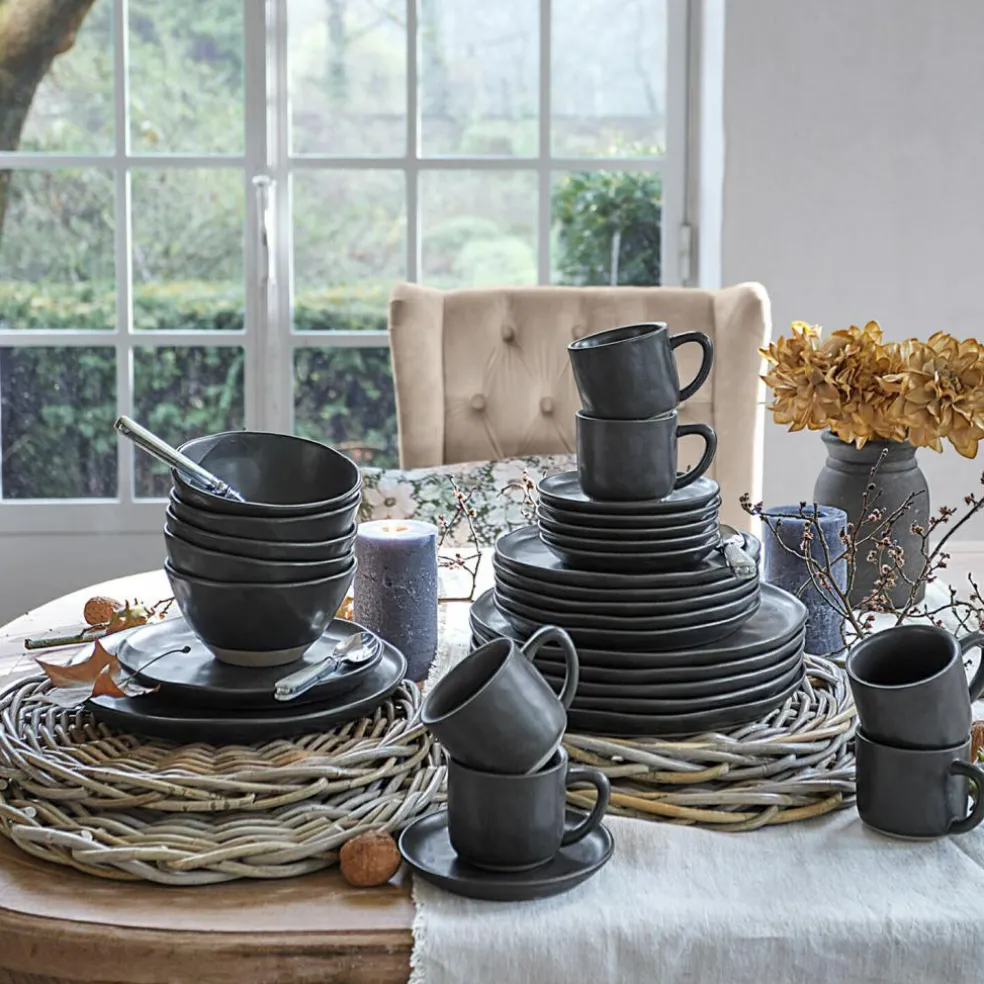 Un magnifique et grand service de trente pièces au charme rétro. Attention: Il s’agit d’un article de seconde main. Le service présente quelques petites irrégularités de production n’ayant toutefois aucune conséquence sur la fonctionnalité et qui viennent même souligner le caractère unique de cette vaisselle. Chaque service, ainsi que chaque élément peut être différent de l’autre: plus foncé, plus clair ou avec une autre nuance. Les illustrations peuvent donc être très différentes de la réalité. Ce sont des pièces uniques, justement! Les irrégularités à la surface de la vaisselle sont volontaires, ce qui lui confère une impression de fait main. Conçu en grès au style artisanal. Le dessous de chaque élément est dépourvu d’émail. On le remarque particulièrement au niveau des bols. Cette face non traitée apporte encore plus de charme à ce service. Son style méditerranéen naturel vous transportera en vacances! Votre table sera ainsi toujours parfaitement dressée, de manière harmonieuse. Ce grand service est idéal pour les repas entre amis ou en famille. L’ensemble comprend six assiettes, six petites assiettes, six tasses, six soucoupes et six bols. Du petit-déjeuner au brunch, en passant par une salade à midi ou des fruits et du fromage le soir, voire une pause café-gâteau ou le dîner du soir, vous aurez toujours le service adéquat. Vous avez également la possibilité de commander des services plus petits de cette vaisselle haut de gamme dans notre boutique en ligne, comme par exemple un ensemble composé de six assiettes ou de six tasses et soucoupes. Faites simplement une recherche par son nom: Biarré! Bon appétit!