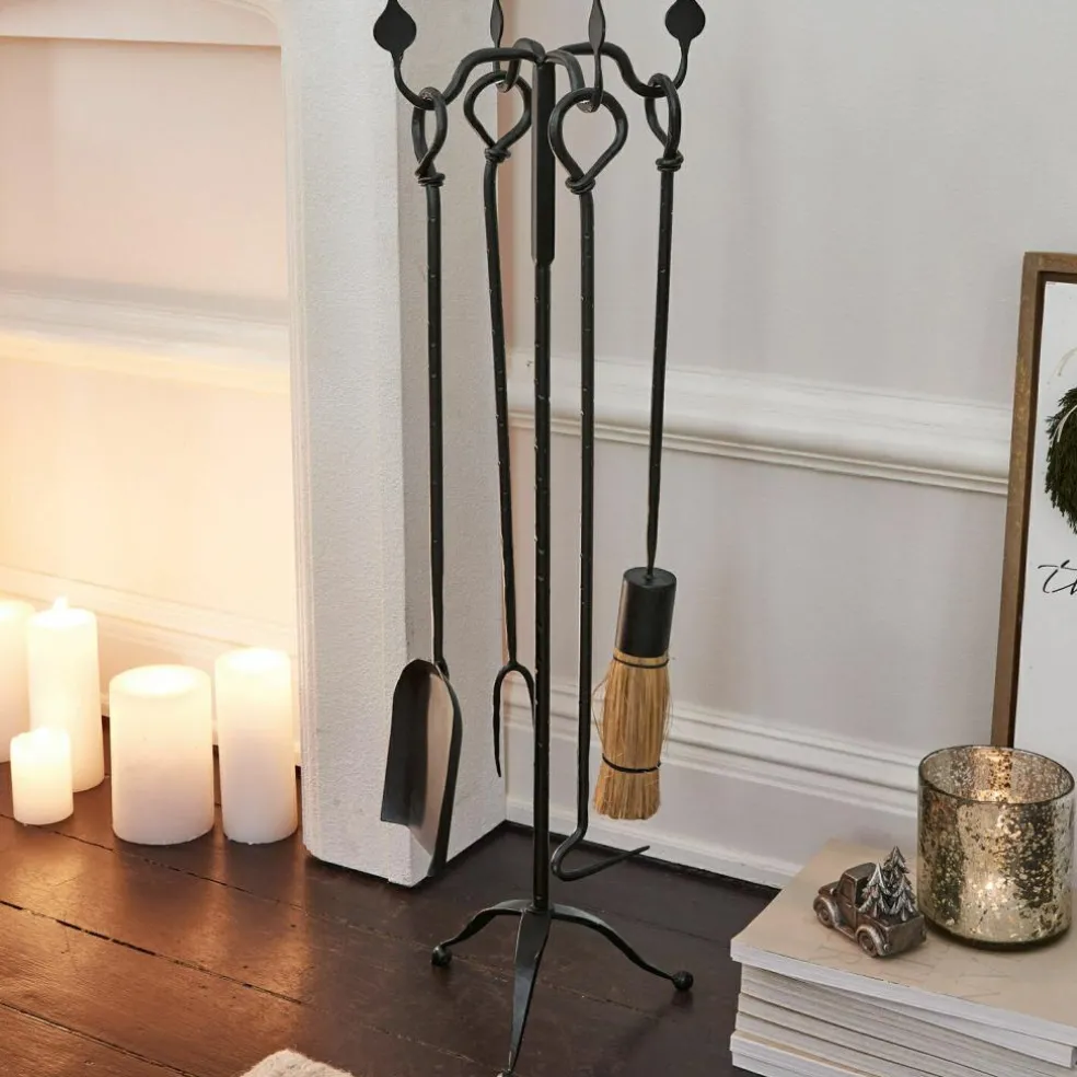 Avec crochet, fourche, pelle et brosse. En en métal solide. Le look vintage authentique confère également à ces outils un caractère décoratif. Avec son bel aspect vintage et intemporel, ce serviteur rehaussera votre coin près de l’âtre et vous permettra de garder à portée de main tout le nécessaire pour vous occuper de votre cheminée: un crochet, une fourche, une pelle et une brosse. Le support présente de nombreux détails réalisés à la main dans un style ancien. Bien entendu, l’ensemble a été forgé dans un métal solide, afin d’assurer sa grande longévité. En bref: vous profiterez de ce superbe ensemble des années durant.