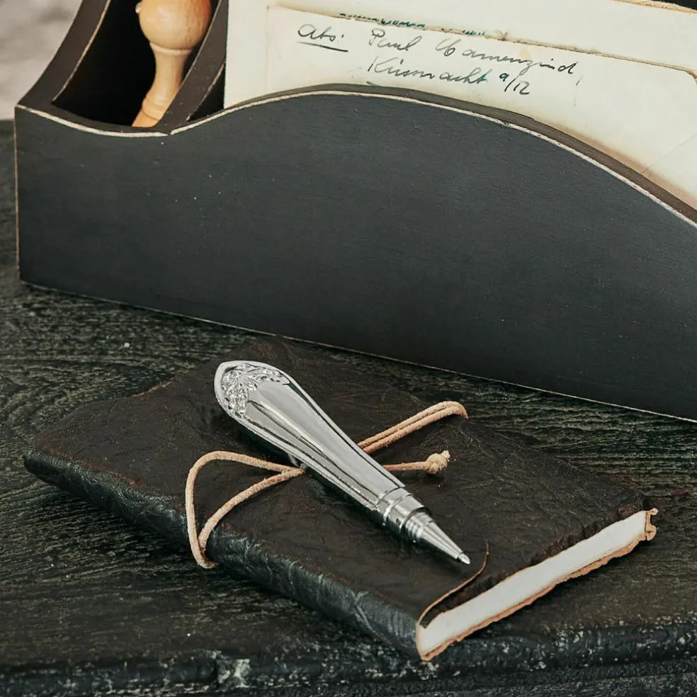 Instrument d’écriture dans un style exclusif. Grâce à sa forme pratique, il tient parfaitement dans toutes les mains. En laiton avec une finition antique. Quelle belle idée de cadeau !