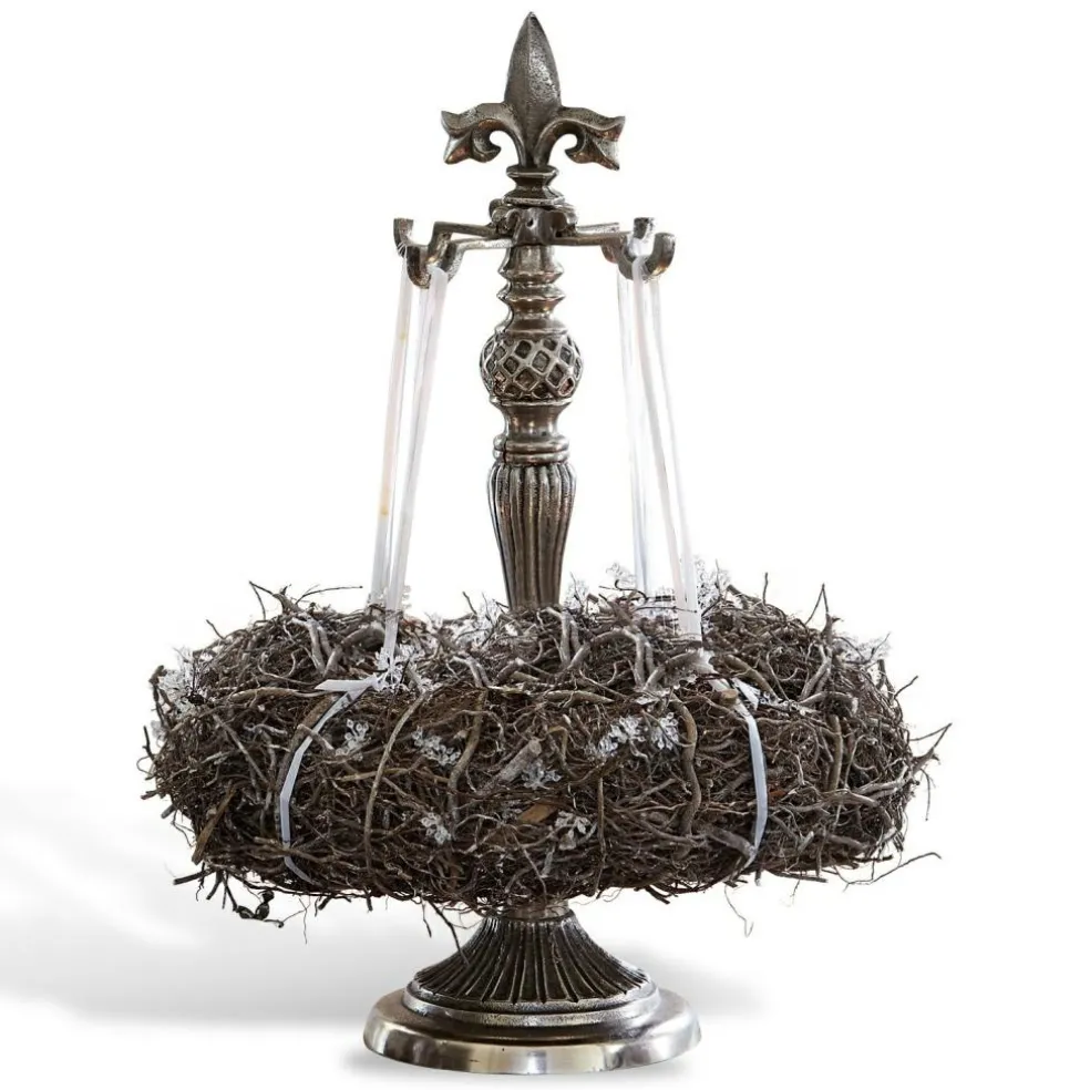 Certaines traditions, avec les années, sont tombées dans l’oubli. Il est dommage que ce soit le cas de ces supports à couronne qui décoraient autrefois presque toutes les maisons, et qui sont désormais véritablement rares. Réenchantez votre intérieur de ce souvenir des temps anciens. Le modèle proposé est réalisé en aluminium pur d’un beau brillant qui soulignera l’élégance de votre couronne.