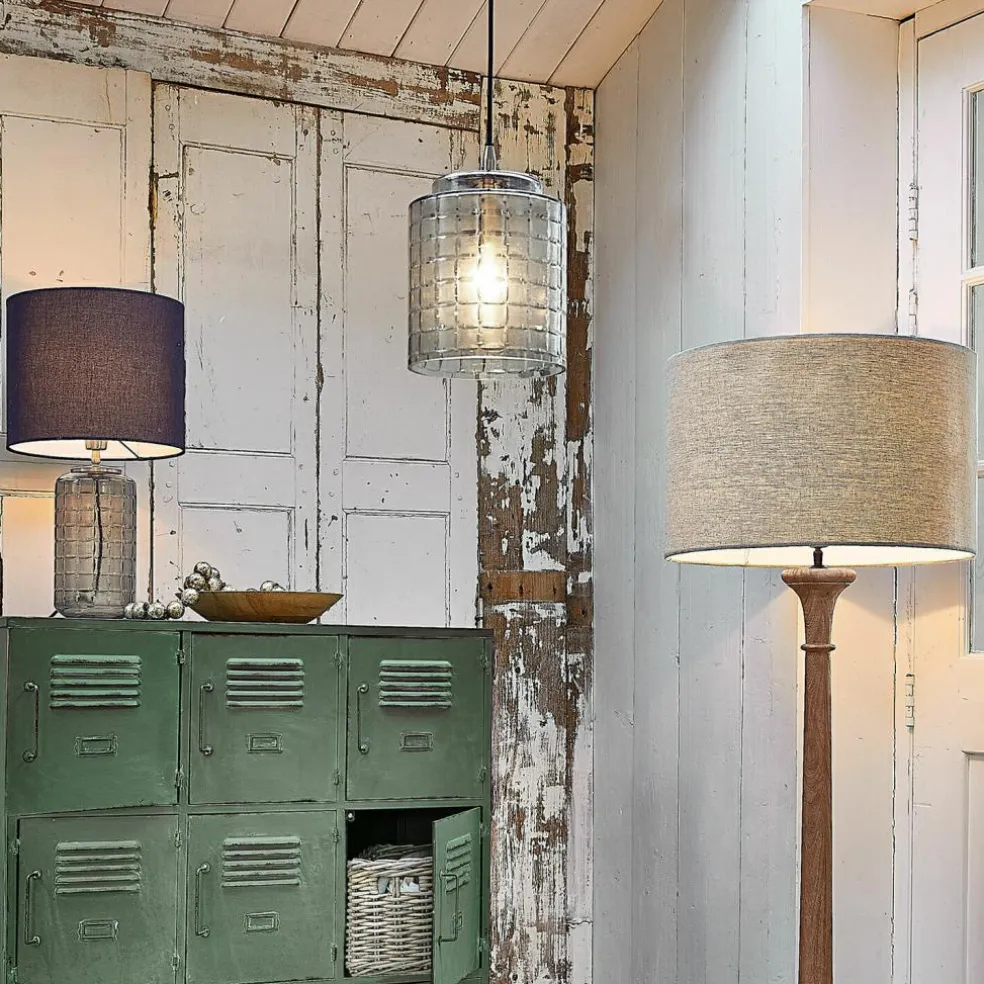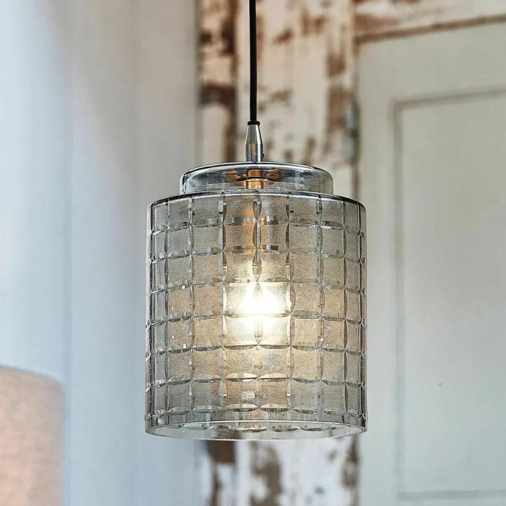 Cette lampe à suspendre est un véritable accroche-regard pour chaque maison : elle combine l’artisanat traditionnel avec un design moderne. Le verre soufflé à la bouche présente une légère nuance de gris qui filtre délicatement la lumière et crée une atmosphère confortable. Les motifs en losange taillés à la main reflètent la lumière de manière impressionnante et projettent de fascinants jeux d’ombres sur les murs. La surface rugueuse du verre confère à la lampe un toucher particulier et souligne son charme inimitable. Que ce soit au-dessus de la table à manger, dans le salon ou dans l’entrée, cette lampe à suspendre attire tous les regards.