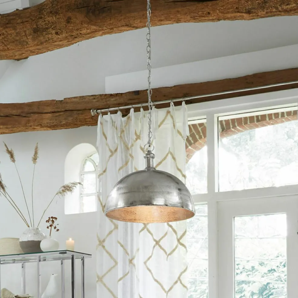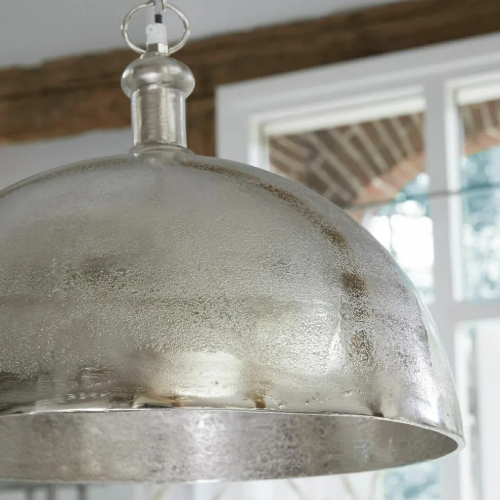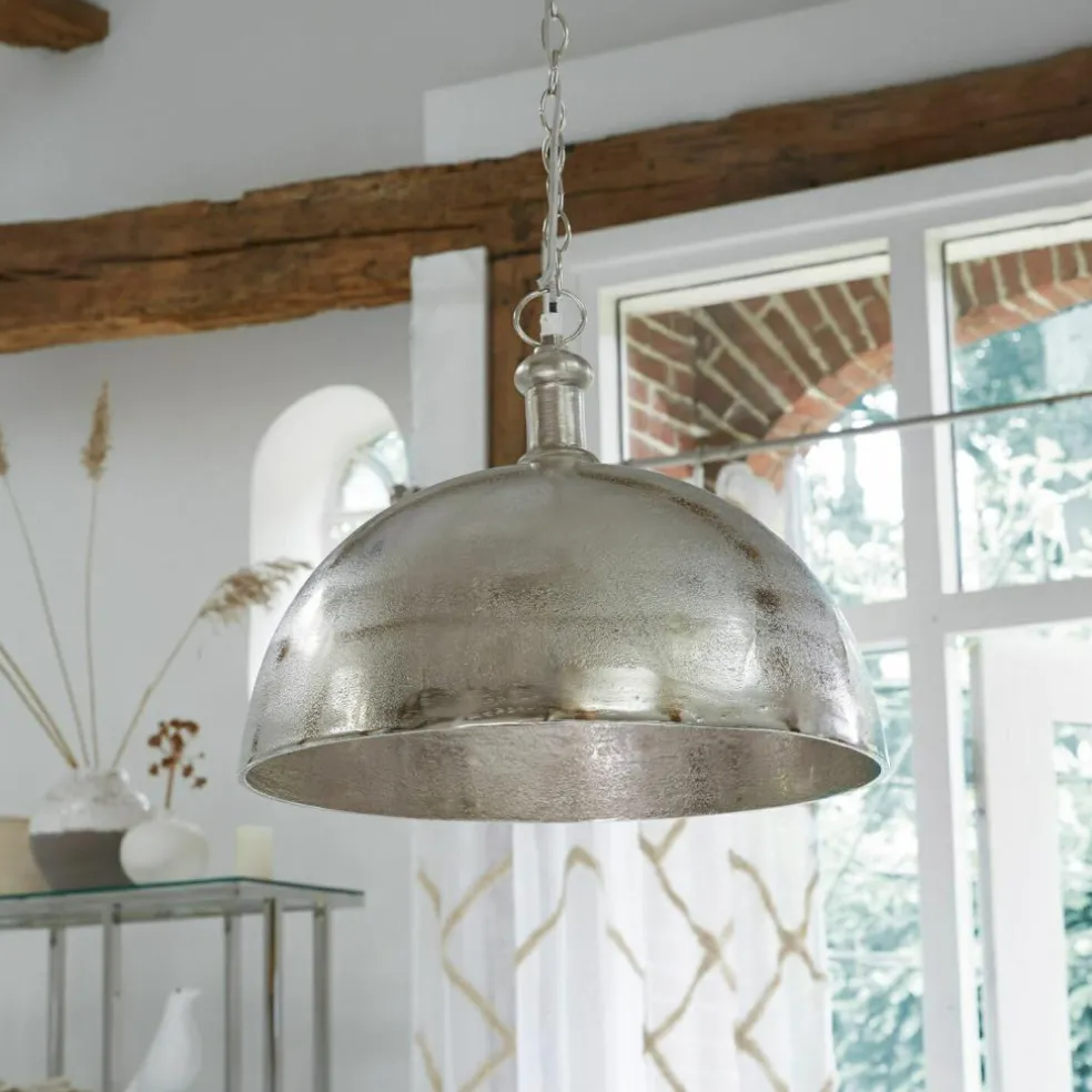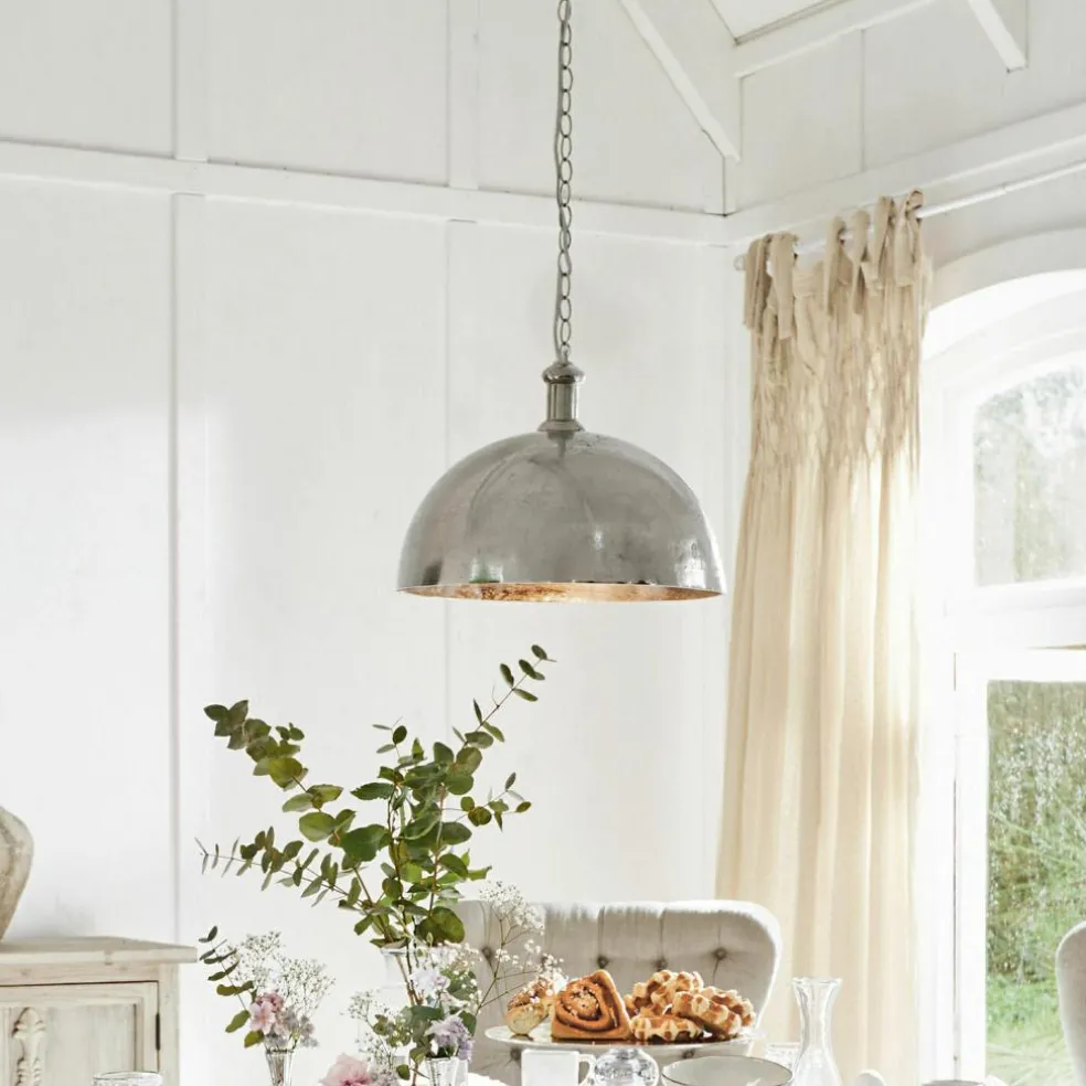Les suspensions au style sobre comme celle-ci appartiennent aux véritables classiques, qui affirment leur place dans n’importe quel environnement. Cette suspension révèle sa parenté avec le style industriel fonctionnel par son matériau en fonte d’aluminium massive, mais l’extrémité supérieure de l’abat-jour est si finement ornée et sa surface structurée si lisse qu’il s’agit indubitablement de la version élégante de ce modèle industriel d’aspect généralement plus brut. Grâce à son abat-jour en demi-sphère fermé sur tout le pourtour, cette suspension projette sa lumière exclusivement vers le bas et trouvera une place de choix au-dessus d’une table de salle à manger ou d’une table basse. Cependant, le diamètre généreux de l’abat-jour, d’environ 40cm, permet également d’éclairer suffisamment alentour, de telle sorte que cette suspension peut aussi servir d’éclairage général tamisé près du canapé ou dans la chambre à coucher. Un accessoire d’intérieur d’aspect sobre et élégant à la fois, qui se marie aussi bien avec d’autres éléments de mobilier en métal qu’avec des bois nobles et des capitonnages voluptueux. Cette suspension s’attache à l’aide de sa chaîne réglable en hauteur.