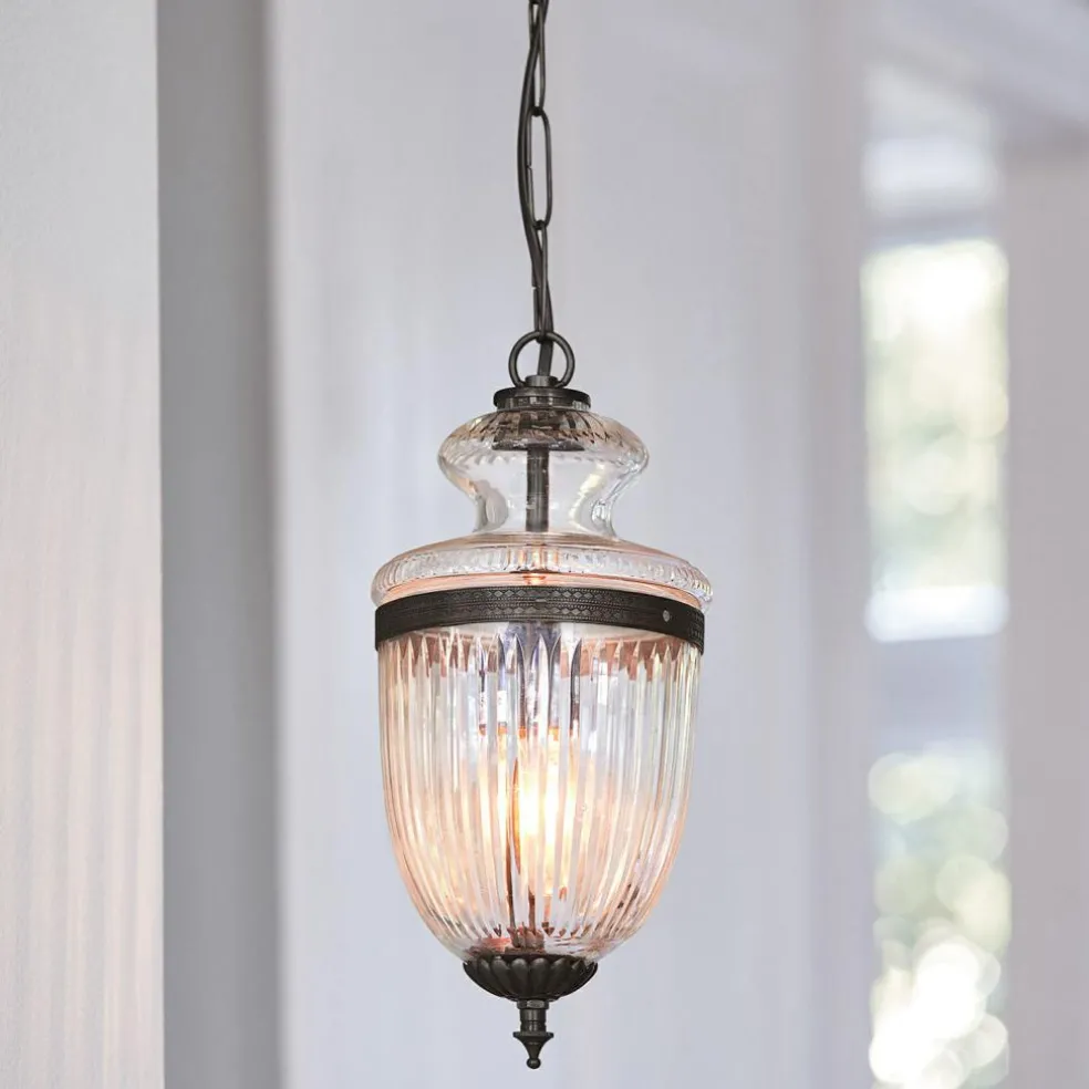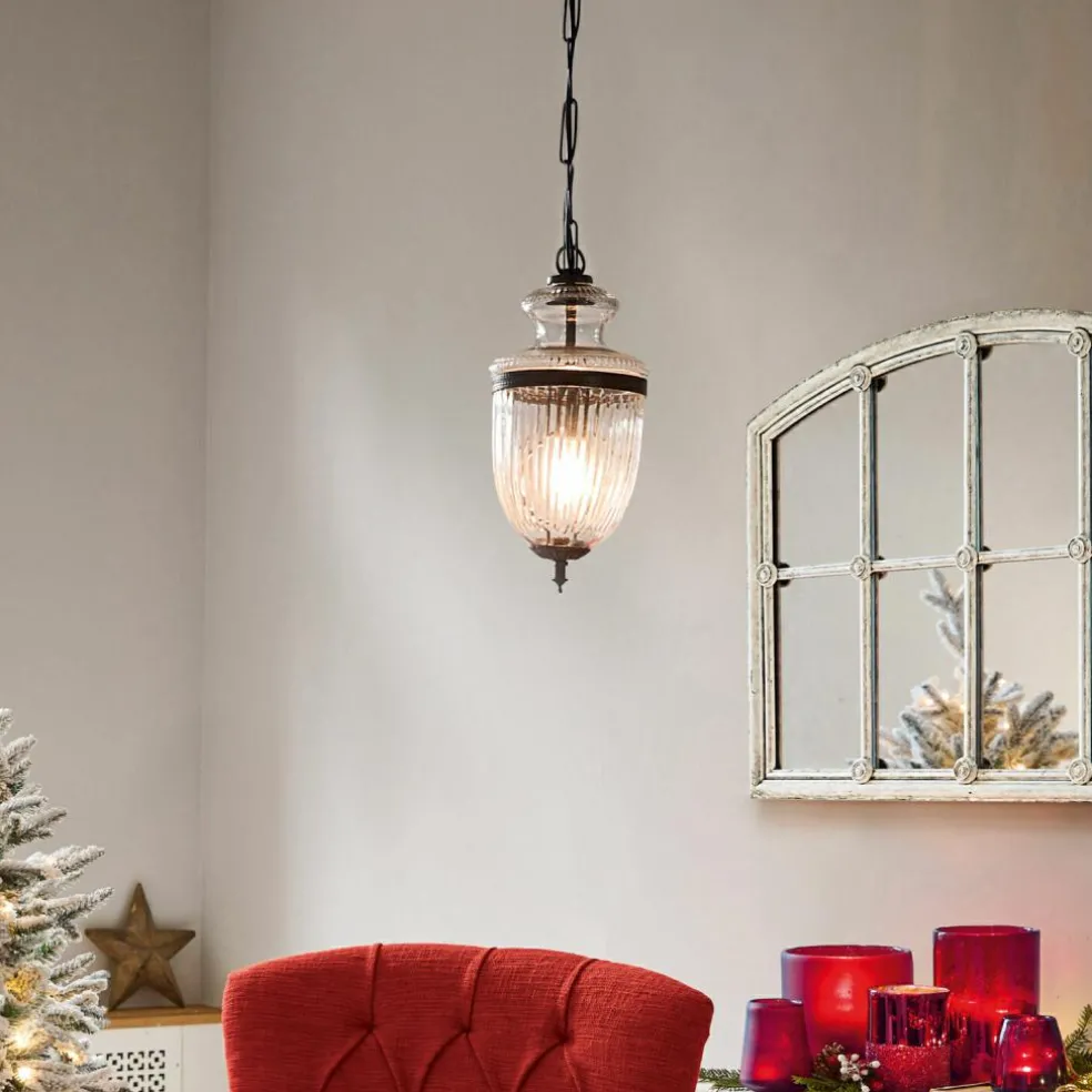 Cette suspension fabriquée à la main dont l’élégance intemporelle rappelle les lampes classiques de la vieille école berlinoise complètera parfaitement tous les styles d’intérieurs. La monture en métal impressionne par ses élégantes décorations. Une allure gracile, merveilleusement classique sans jamais entrer dans le kitsch. La qualité raffinée de l’abat-jour en verre cannelé assure un éclairage parfait. L’ornement en métal haut de gamme en bas de la lampe peut être dévissé pour permettre l’accès à l’ampoule.
