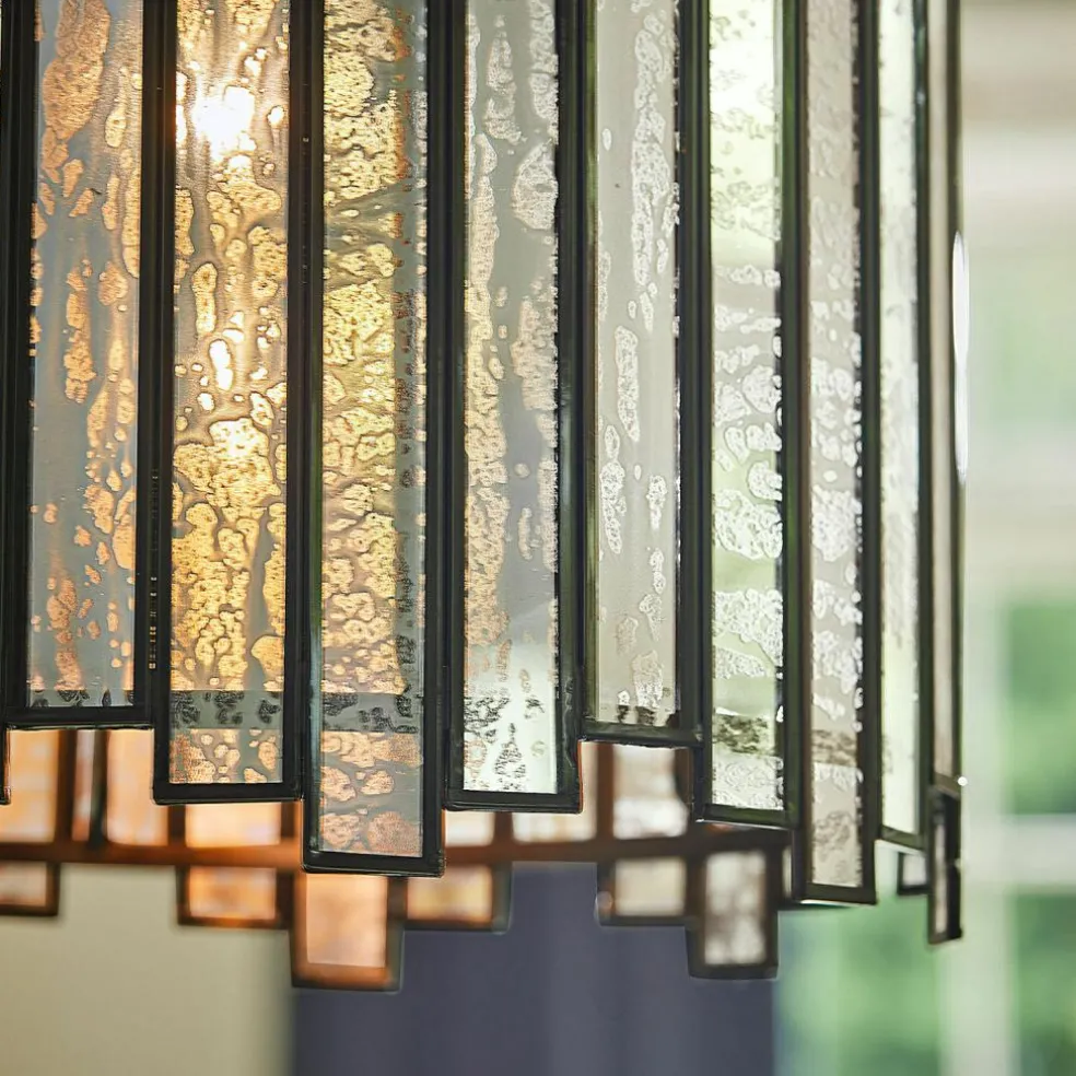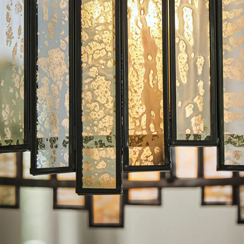 Une suspension impressionnante! Sa base en métal solide est rehaussée d’éléments en verre à l’effet vieilli qui reflètent la lumière de la plus belle des manières. Chaque élément en verre a été conçu avec soin pour créer un motif unique et esthétique qui plongera la pièce dans une ambiance chaleureuse et précieuse. Au-dessus de la table à manger, au salon ou dans l’entrée, cette lampe attire tous les regards et crée une atmosphère toute particulière. Craquez pour la forme et les matières de cette lampe et mettez vos pièces de vie en valeur.