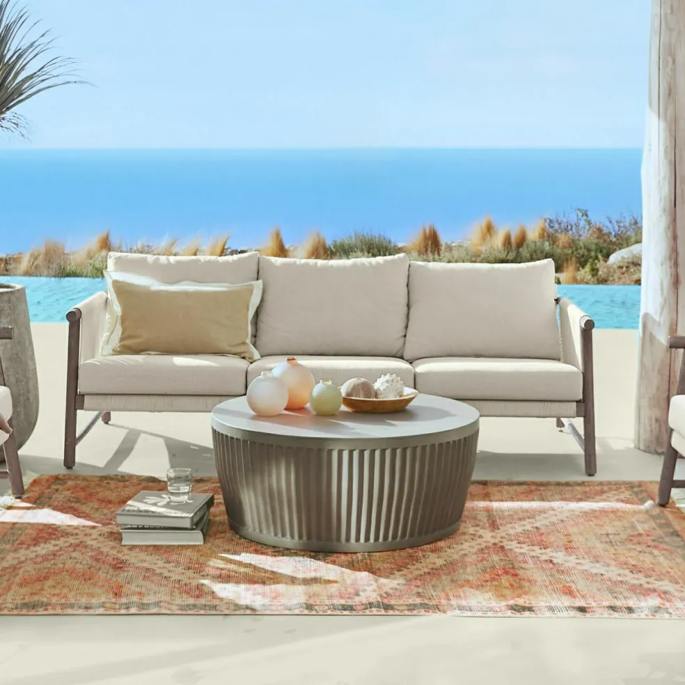 Avec sa forme ronde épurée et son motif rainuré finement structuré, cette table basse apporte une touche puriste à tout espace extérieur. Sa discrète finition grise s’harmonise facilement avec l’architecture moderne et les environnements naturels. Fabriquée en béton massif, elle promet une grande solidité et une résistance aux intempéries, ce qui lui permet de résister aux conditions les plus difficiles. Qu’elle soit utilisée comme point central d’un coin salon confortable ou comme complément élégant de votre terrasse, cette table allie fonctionnalité et esthétique intemporelle pour enrichir tout espace extérieur.