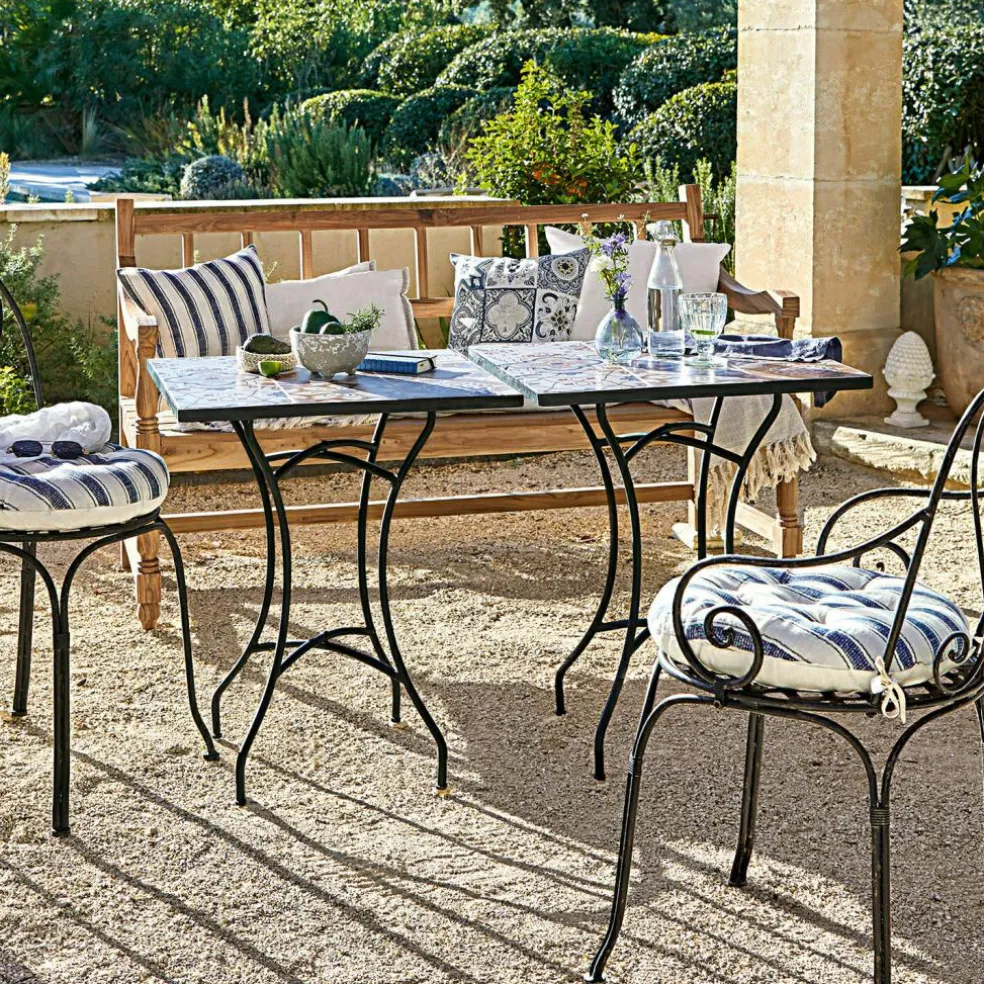 Une table qui fait entrer un peu de Positano chez vous : cette pièce insolite apporte de l’élégance entre vos quatre murs. La structure en métal confère de la solidité, tandis que les carreaux de faïence artisanaux dans plusieurs teintes de beige, de marron et de bleu ajoutent une note singulière. Le motif inspiré de Positano du plateau attire littéralement tous les regards sur ce bijou. Profitez d’un petit-déjeuner sur votre balcon ou de quelques heures de détente dans le jardin. Artisanale et de grande qualité, cette table répond au moindre désir.
