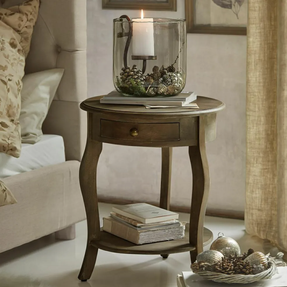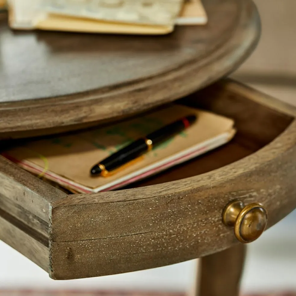 Tournée et façonnée à la main. Bois de manguier naturel. Avec tiroir. Un accessoire noble au style légèrement nostalgique qui ennoblit chaque pièce La table d’appoint pratique aux pieds courbés évoque l’élégance et apporte une touche de style vintage dans votre maison. Elle peut être utilisée de plusieurs façons et elle trouve facilement sa place, même dans de petites pièces. Grande possibilité de rangement grâce à un petit tiroir et à l’étagère inférieure.