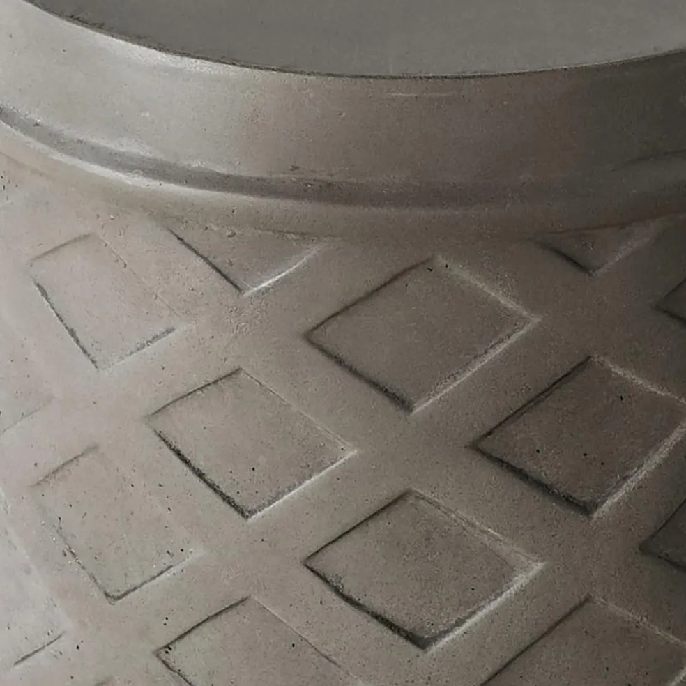 Ce tabouret en béton massif est un mélange parfait de style minimaliste et de stabilité fonctionnelle. Avec son motif géométrique en forme de diamant, il apporte une touche moderne à tout espace extérieur. Qu’il soit utilisé comme siège ou comme table d’appoint, sa construction robuste en fait un accessoire durable pour le jardin, la terrasse ou le balcon. Pour un entretien optimal et une protection durable, nous vous recommandons de bien le couvrir ou de le mettre à l’abri pendant les mois d’hiver. Un objet polyvalent, esthétique et pratique, qui complète avec style votre oasis de plein air.