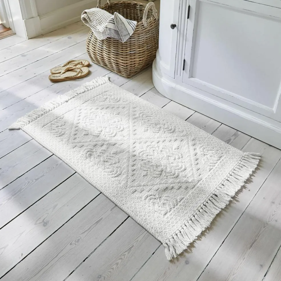 Ce tapis de bain confère à votre salle de bain une atmosphère sobre et élégante. Fabriqué en jacquard de coton doux, il présente un toucher doux qui procure une sensation de confort aux pieds, même par temps froid. Son motif joliment travaillé s’intègre facilement à différents concepts d’aménagement et souligne votre amour de la qualité et du confort. Sa finition de haute qualité le rend à la fois durable et facile d’entretien : un accessoire idéal qui allie harmonieusement fonctionnalité et esthétique.