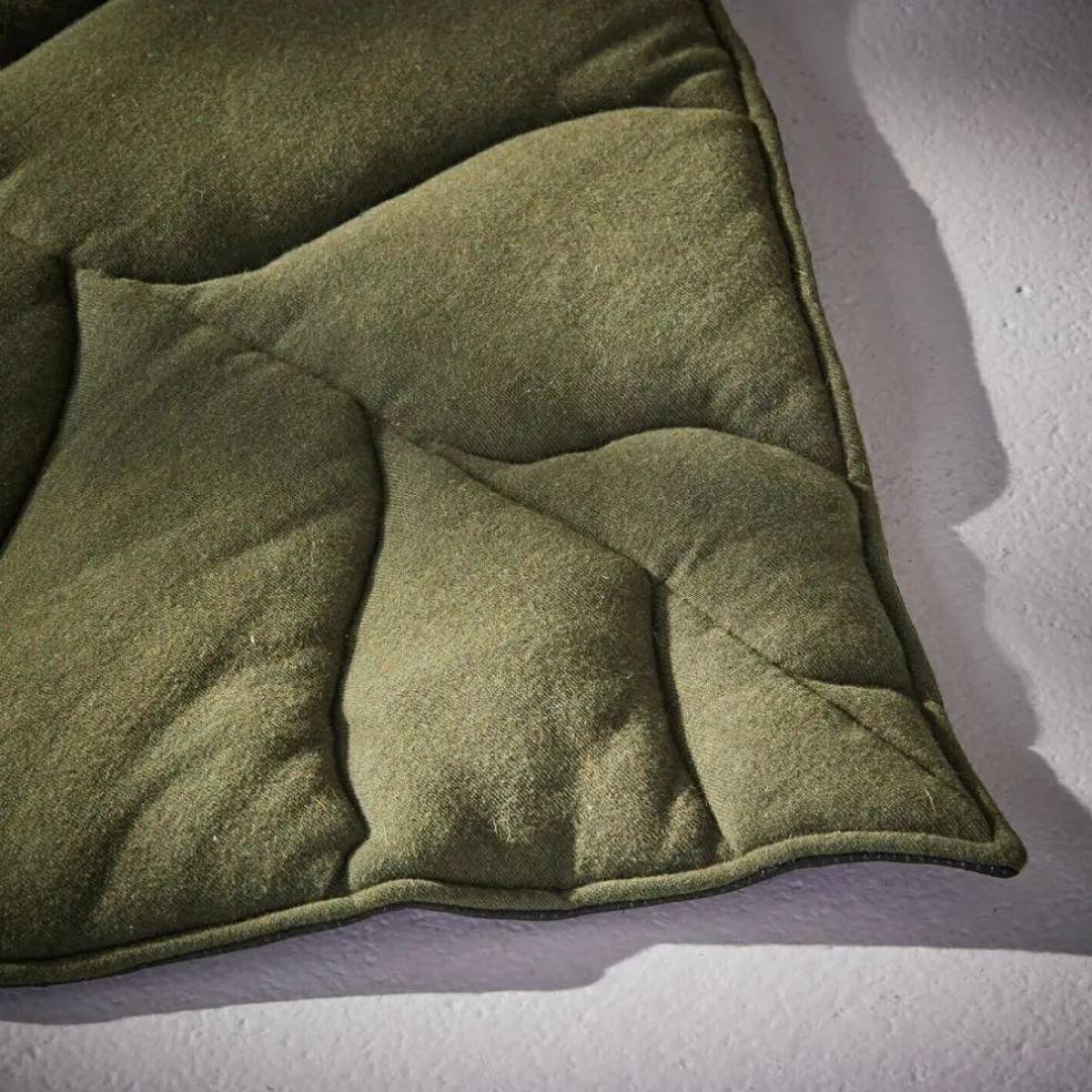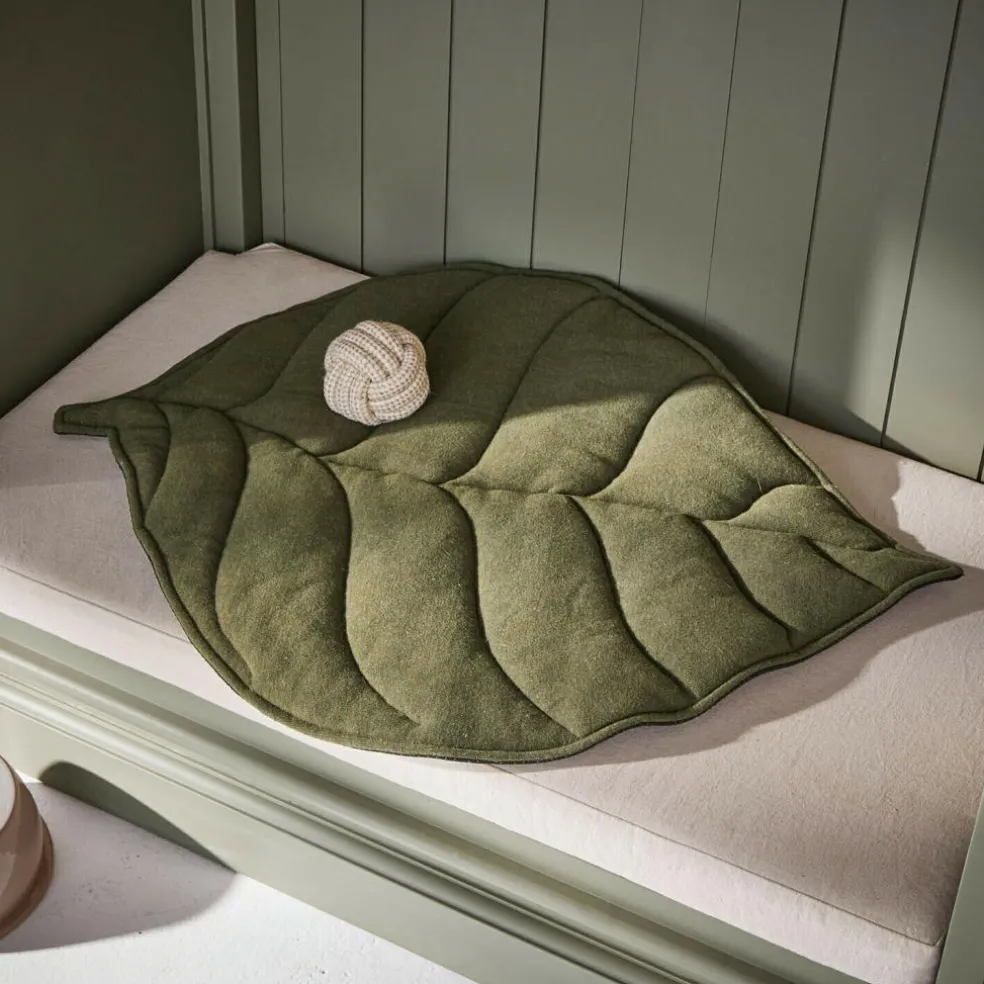 Que ce soit pour le sommeil des petits chiens ou des chats, ce tapis est bien plus qu’un simple lieu de repos douillet. Sa forme organique avec un veinage de feuilles délicatement modelé a un effet apaisant et crée une île confortable sur le sol. La structure fine et tricotée du coton séduit par son toucher naturel, tandis que le vert sobre s’associe harmonieusement aux plantes, au bois et aux tons chauds. Votre animal pourra se sentir en sécurité sur ce tapis : rêveries, siestes prolongées et étirements confortables au programme. L’accessoire est facile à laver et dura ainsi bien plus longtemps.