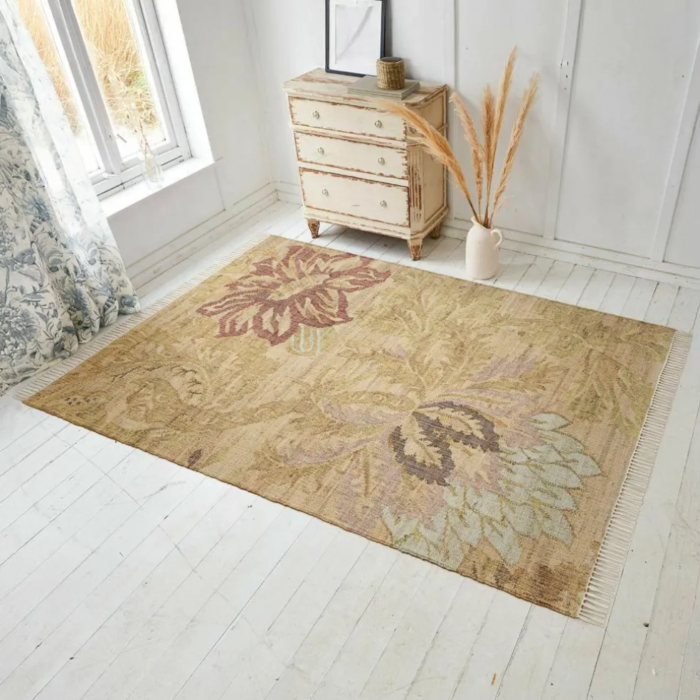 Laissez-vous charmer par la beauté de ce tapis confectionné dans un superbe mélange de 80 % de jute et de 20 % de coton. Le superbe motif kilim et de superbes fleurs aux coloris délicats forment une alliance harmonieuse entre styles traditionnel et contemporain. Le toucher naturel du mélange de jute et de coton apporte un côté très chaleureux tandis que les motifs floraux confèrent une pointe de romantisme et d’élégance à votre maison. Idéal pour les espaces de vie ou pour la chambre à coucher, ce tapis s’utilise comme élément de décoration principal ou en complément d’un aménagement intérieur. Placez-le devant votre canapé, sous la table ou à côté du lit pour créer en un clin d’œil une atmosphère aussi élégante qu’agréable. La confection résistante garantit une belle durabilité et vous assure de profiter de votre tapis des années durant.