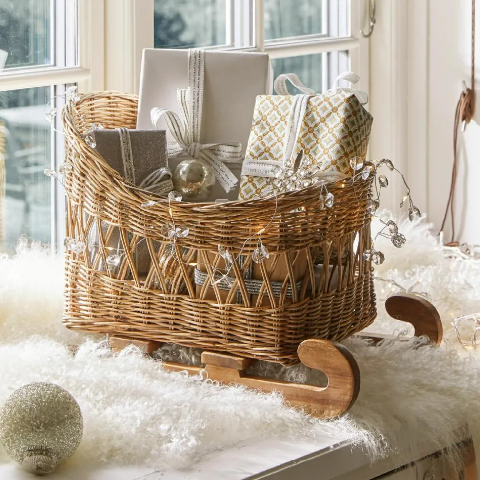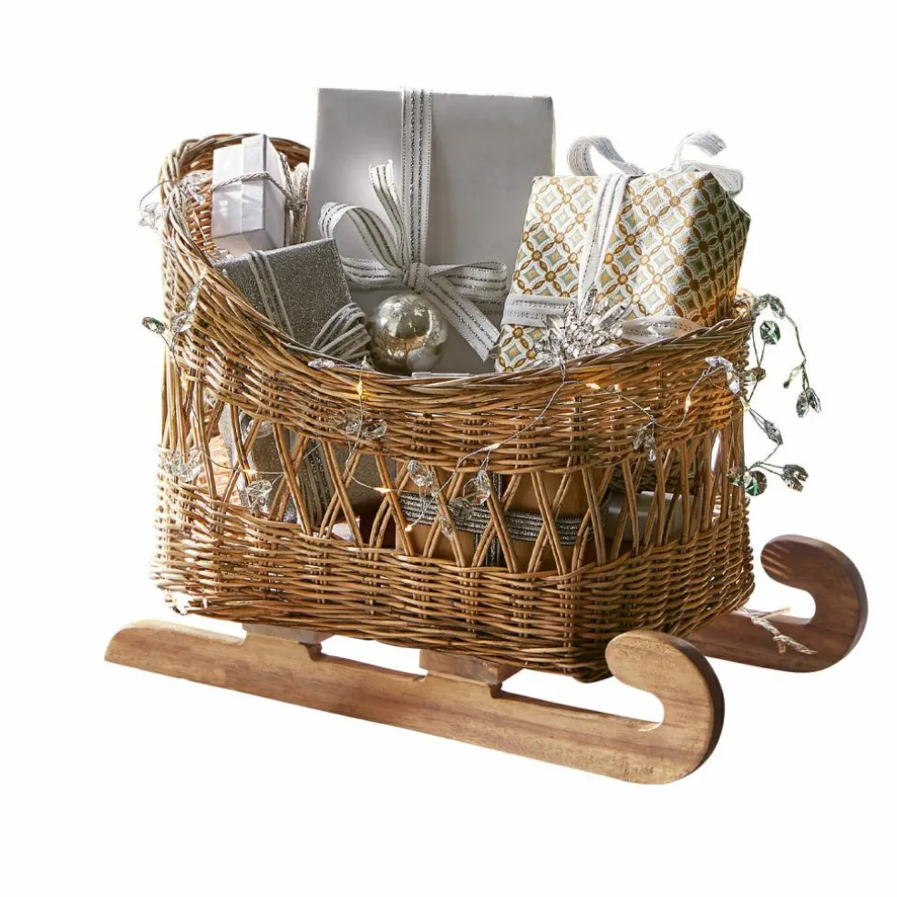 Créez une superbe décoration pour les fêtes de fin d’année grâce à ce traîneau décoratif ! Chaque détail du traîneau a été soigneusement confectionné à la main : le tressage en rotin naturel lui confère une touche accueillante et rustique, tandis que les patins en bois de pin assurent une bonne stabilité tout en restant naturels. Pour présenter les cadeaux de manière créative ou simplement comme élément décoratif dans votre salon, le traîneau invite l’artisanat traditionnel et une pointe de magie hivernale dans votre intérieur.