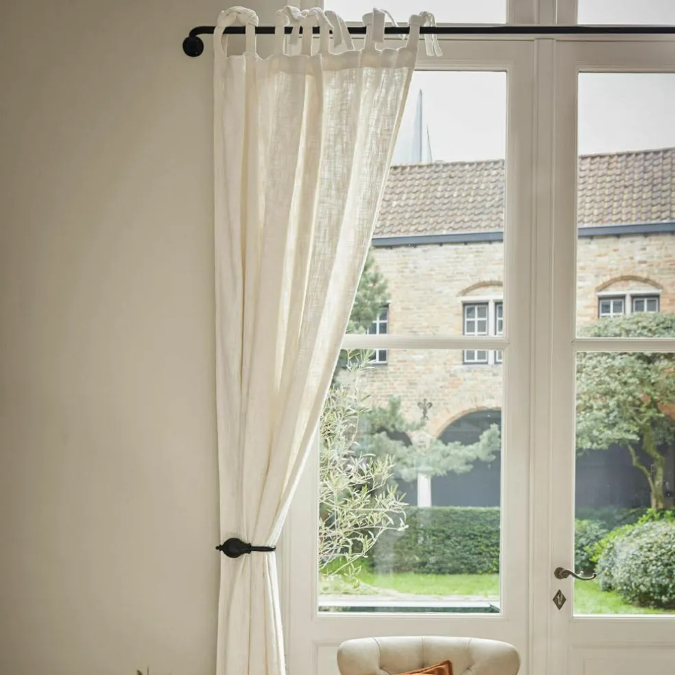 Cette tringle à rideaux séduit par sa conception bien pensée qui permet de l’installer dans un angle : idéal pour créer de charmantes transitions entre deux pièces ou si vous souhaitez poser un rideau au niveau d’une porte. Le revêtement par poudre noir mat du fer lui confère un style moderne, presque graphique, tandis que les embouts et embrasses décoratives misent sur un aspect plus nostalgique. Pratique : la barre est extensible avant installation et s’adapte à vos dimensions. Une fois installée, sa longueur reste fixe. Une solution esthétiquement bien pensée pour tous ceux qui aiment mettre en scène leur intérieur.