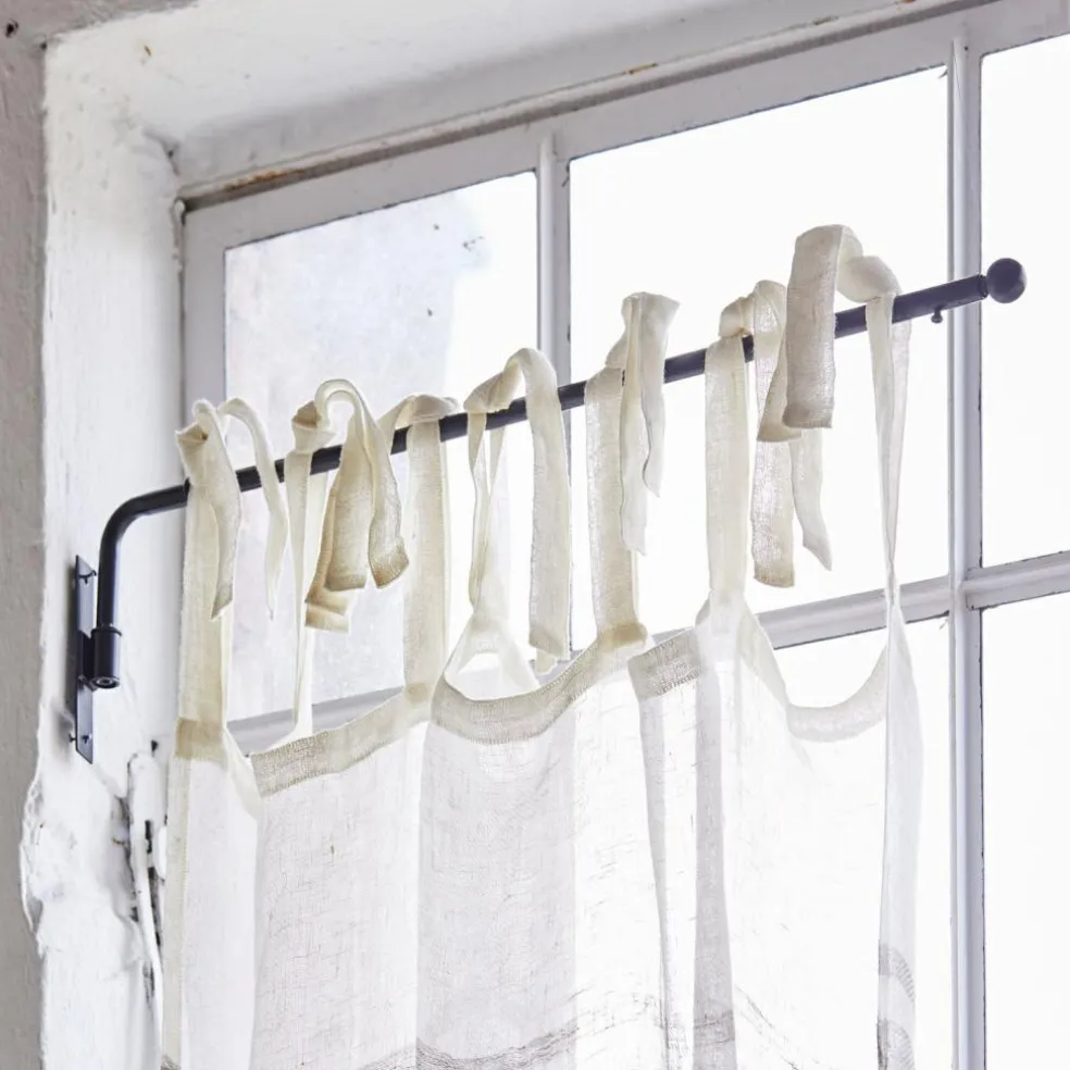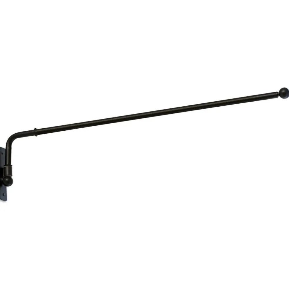En métal, pivote horizontalement. Cette barre à rideau de grande qualité est réalisée en métal pur et présente de multiples avantages. Elle est réglable en longueur (de 60 à 100 cm) et montée sur une fixation qui fonctionne comme une charnière. Ainsi, vous pouvez faire pivoter la barre horizontalement de manière à regarder la fenêtre.