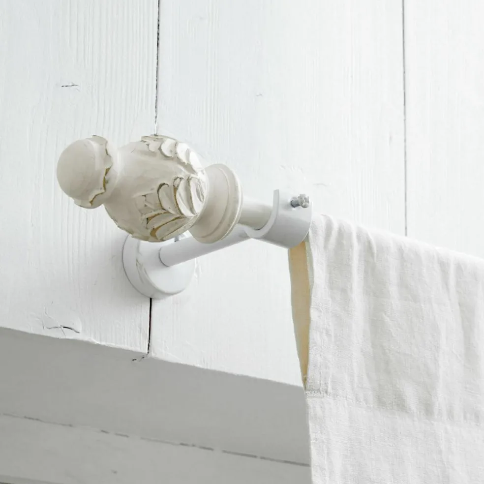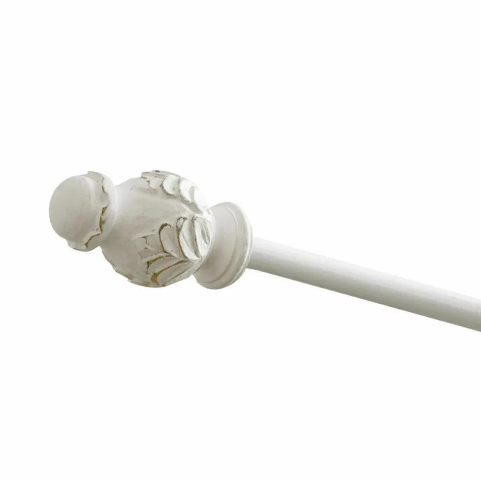 Cette très jolie tringle à rideaux est aussi fonctionnelle que décorative. Elle offre une belle place à vos rideaux tout en attirant elle-même tous les regards. Son superbe embout sculpté à la main et confectionné dans un beau bois de manguier avec finition blanc vieilli est paré d’ornements. Le résultat : une superbe touche vintage pour les intérieurs shabby chic. La tringle s’ajuste en longueur de manière flexible pour s’adapter au mieux à vos fenêtres. Dans le salon, la salle à manger, la cuisine ou encore votre bureau, cette tringle à rideaux est toujours un bon choix pour un effet cocooning et vintage dans votre intérieur.