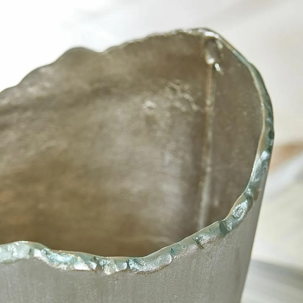 Ce vase insolite en fonte d’aluminium séduit par l’association harmonieuse de matériaux bruts et de formes artistiques. La face extérieure mate lui confère une présence douce et apaisante, tandis que la face intérieure brillante reflète la lumière de manière tout à fait fascinante. Les bords irréguliers soulignent le caractère individuel de ce vase qui convient particulièrement bien aux compositions florales sèches. Chaque vase est une pièce résolument unique de par sa forme. Un véritable bijou qui flattera le regard aussi bien dans les intérieurs de style moderne que classique et qui distille dans votre pièce une atmosphère toute particulière.
