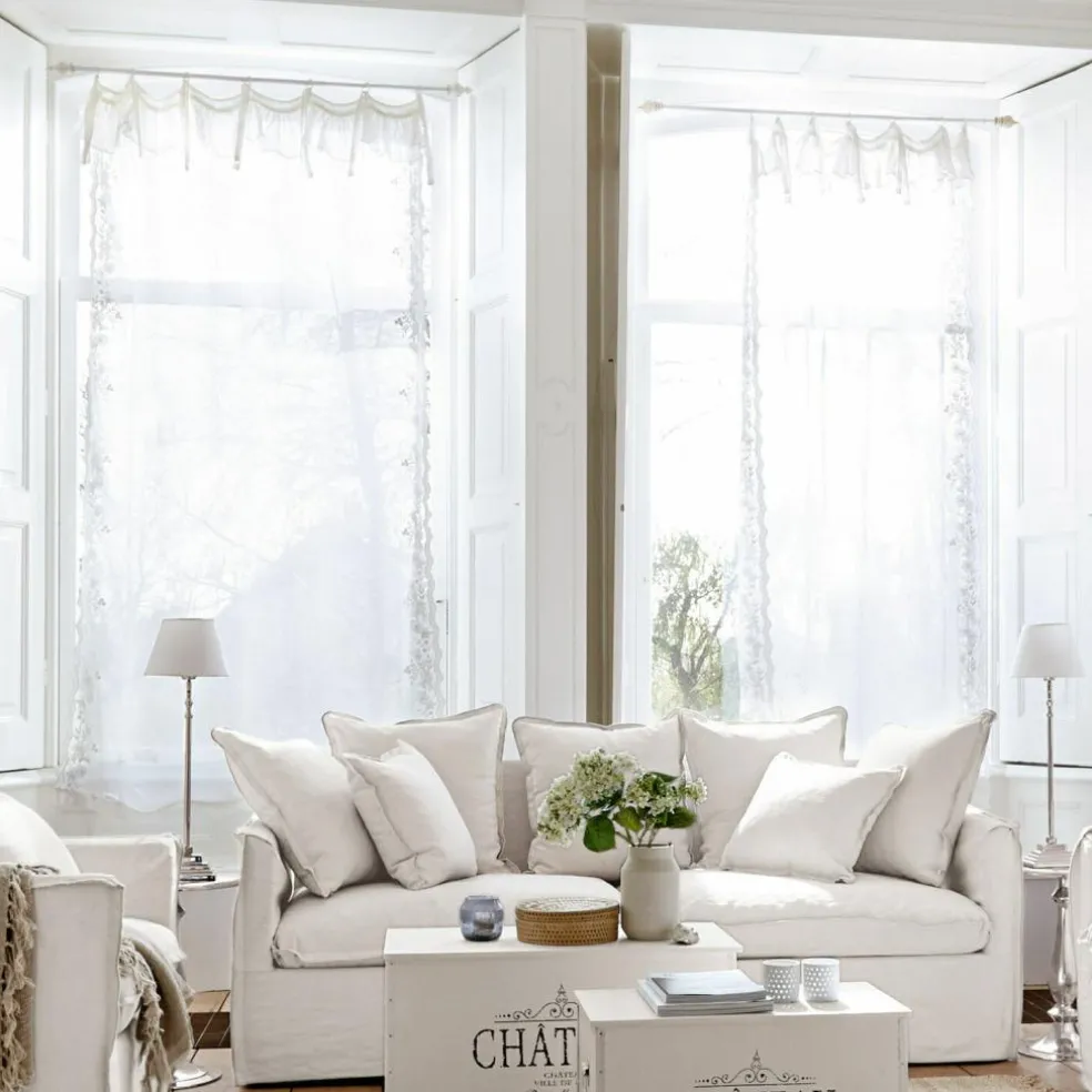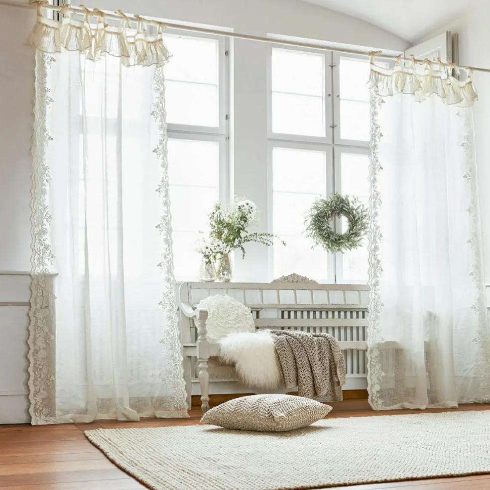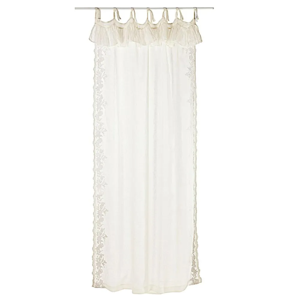 Magnifique dentelle en pur lin. Superbe broderie florale. Batiste légère et transparente. Ce délicat voilage au charme résolument vintage est idéal dans un intérieur de style shabby chic. Aérien et très finement tissé, il a un effet particulièrement décoratif. Les nouettes permettent de l’installer très facilement et de faire varier légèrement la hauteur. Pourquoi ne pas vous en servir pour décorer votre coin bureau ou votre salon ? Le tissu transparent est idéal pour toutes les pièces qui ne nécessitent pas de protection particulière contre les regards. Si vous appréciez les accessoires vintage au charme d’antan, vous allez adorer ce voilage d’exception.
