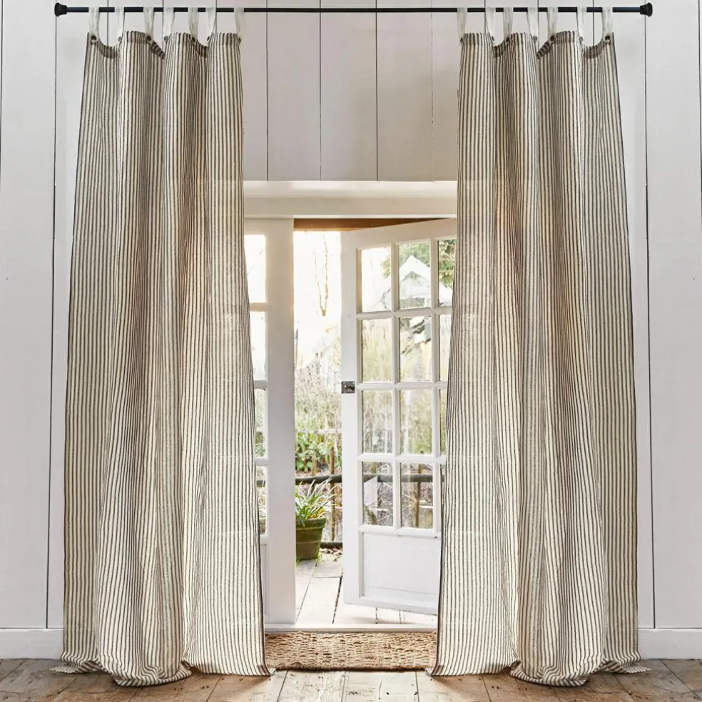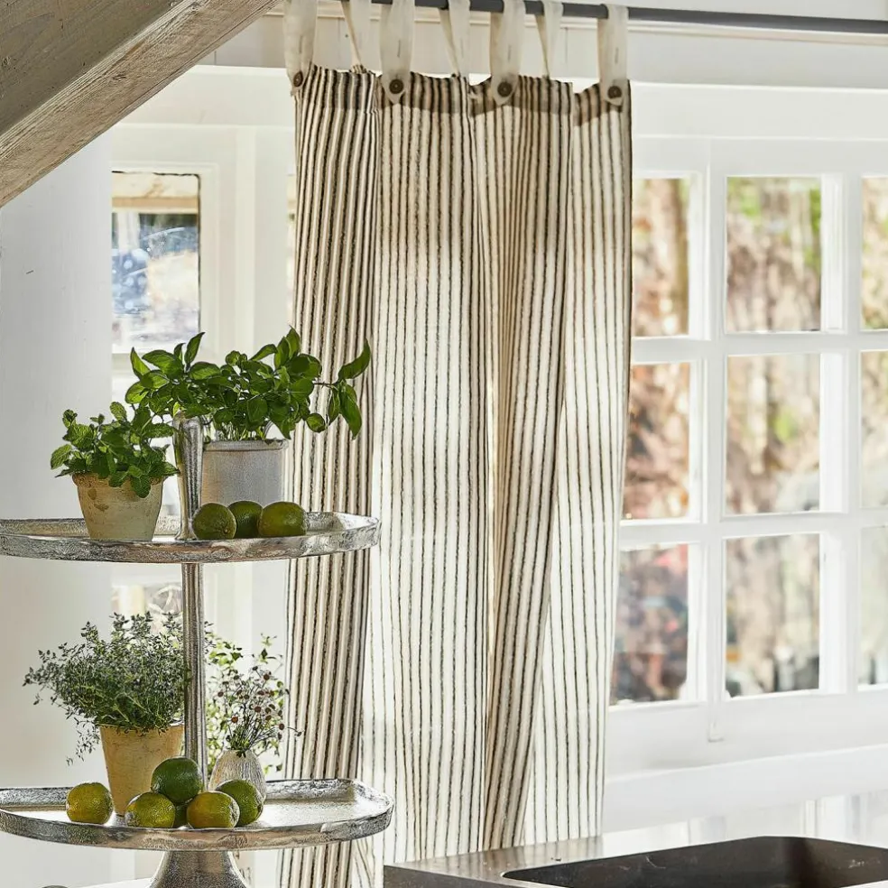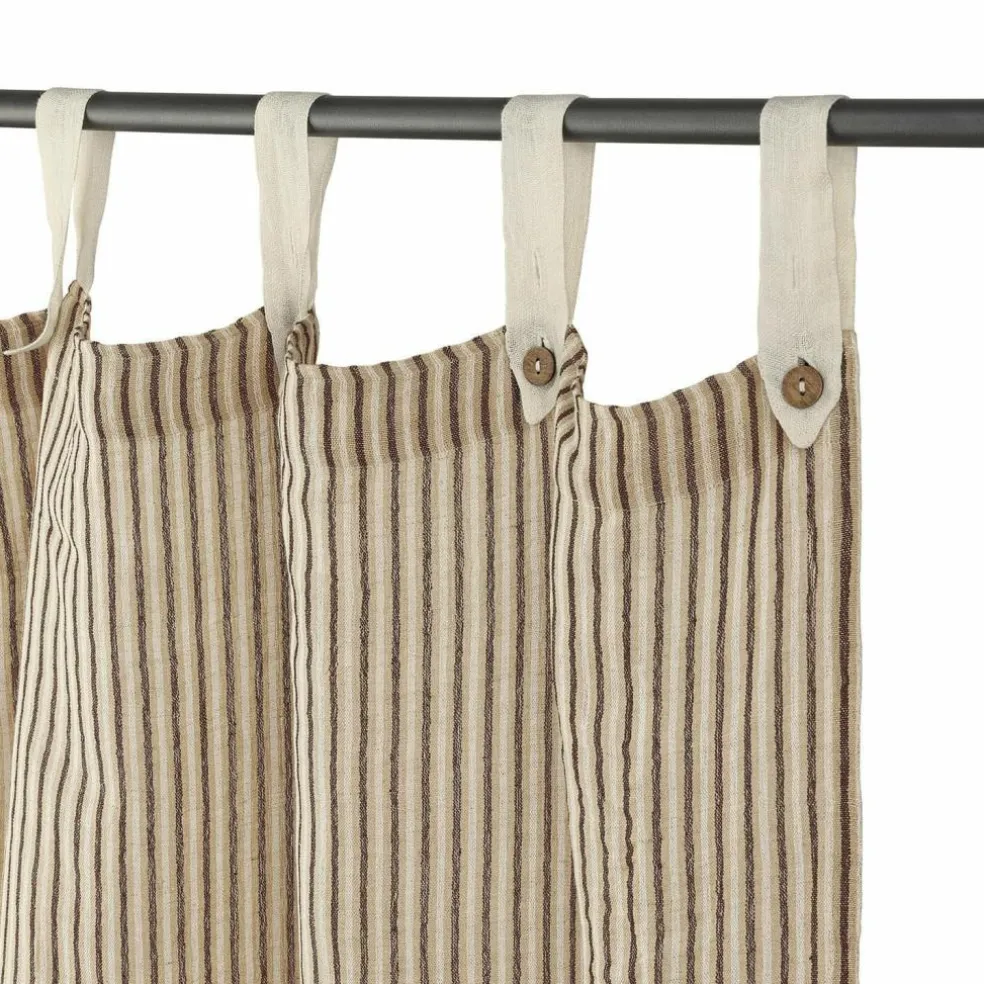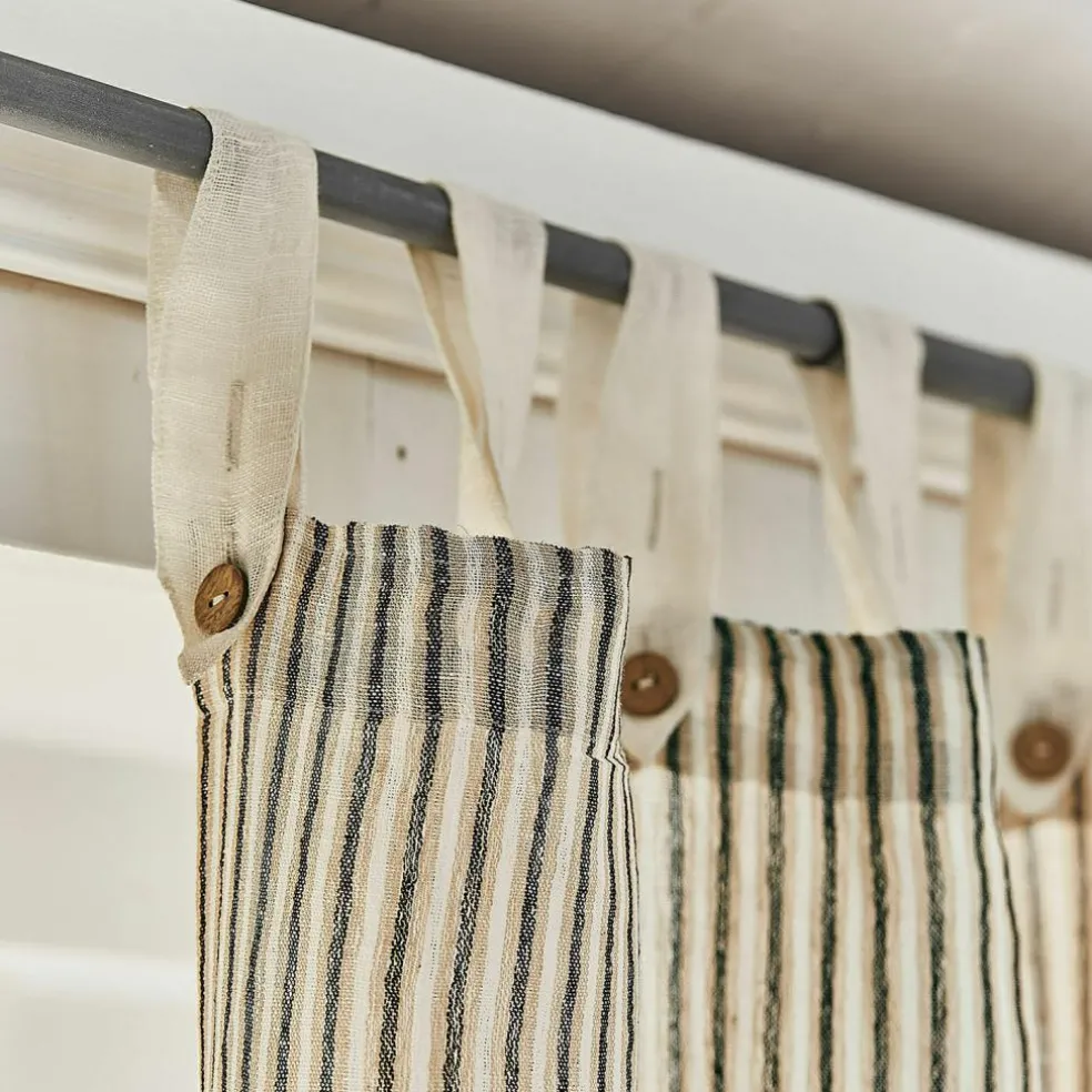 Faites entrer chez vous ce voilage qui allie sans peine fonctionnalité et esthétique. Le mélange de coton et de lin de qualité supérieure confère au tissu un toucher naturel et légèrement structuré et assure un environnement intérieur agréable. Le motif à rayures finement assorti, composé de trois couleurs, est à la fois frais et classique, ce qui lui permet de s’intégrer parfaitement dans les styles d’intérieur les plus divers. Les liens avec fermeture à bouton en bois ne sont pas seulement pratiques, ils confèrent également au rideau une note de charme. Que ce soit dans le salon, la chambre à coucher ou la cuisine, ce rideau met en scène chaque pièce avec brio.