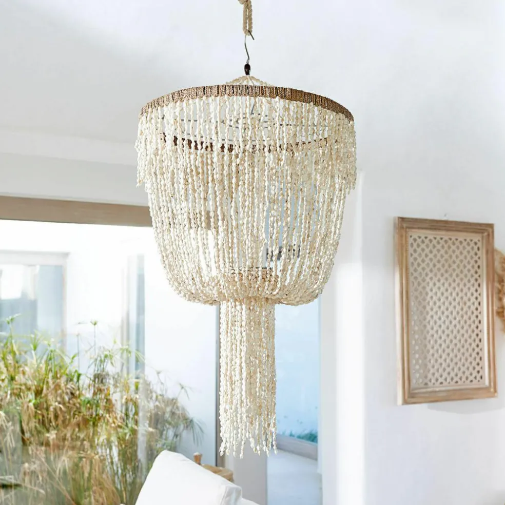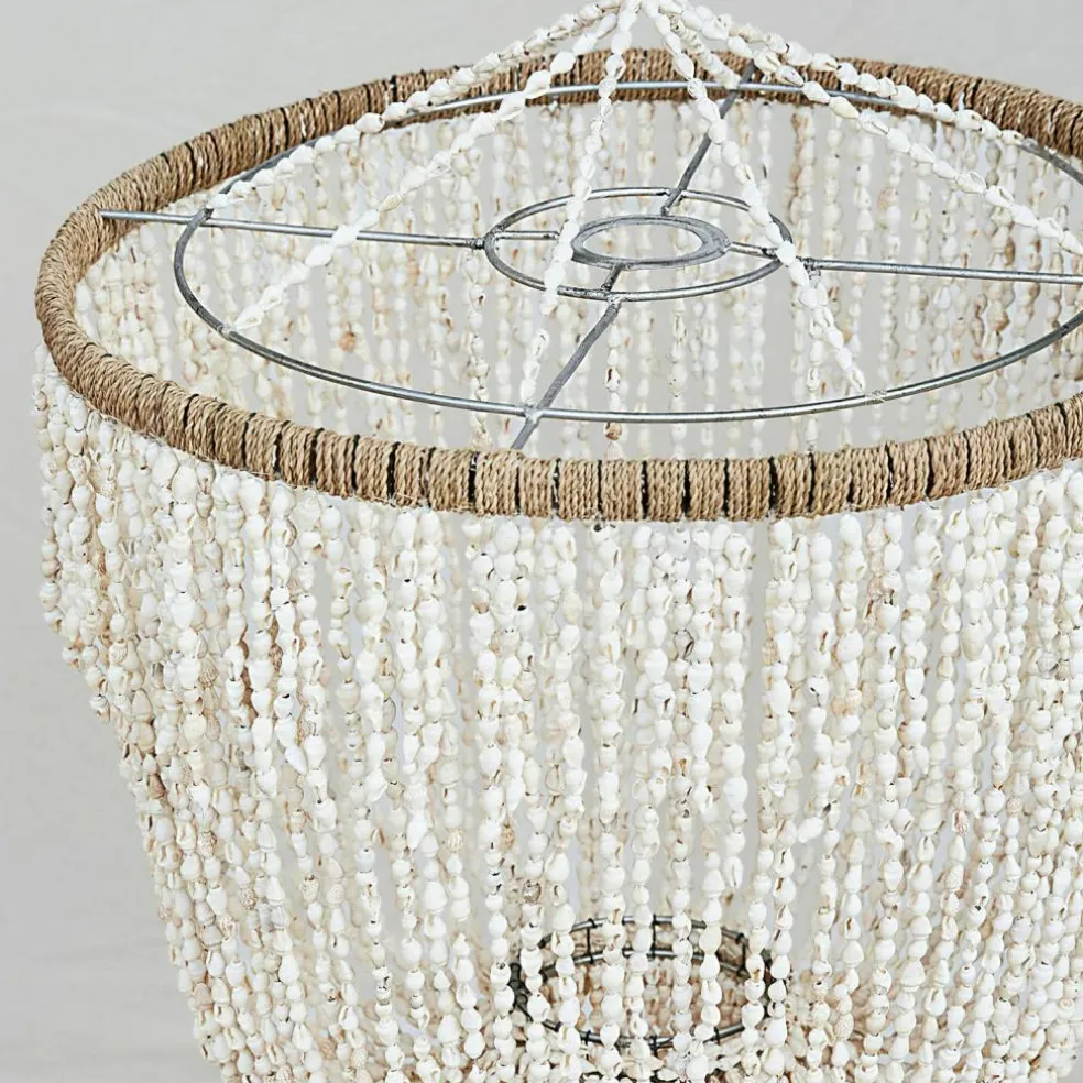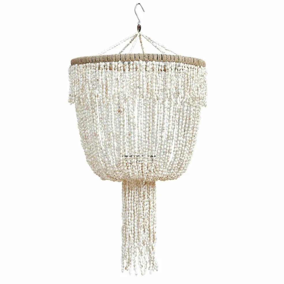 Cet abat-jour confectionné à la main en coquillages est un hommage à la beauté et la tranquillité de l’océan. Chaque coquillage a été rigoureusement sélectionné et assemblé pour faire entrer un peu de l’harmonie de la mer dans votre maison. Les délicates nuances de blanc et de crème s’harmonisent avec différents styles d’intérieurs et créent un luminaire unique qui séduit aussi bien par son aspect que par son acoustique. Que vous utilisiez cet abat-jour dans une maison d’été ou comme pièce maîtresse dans votre refuge en ville, il sera sans aucune doute au cœur de toutes les conversations.