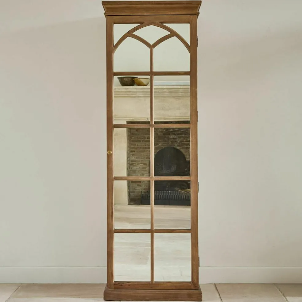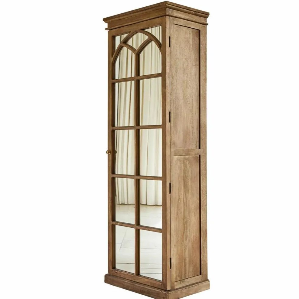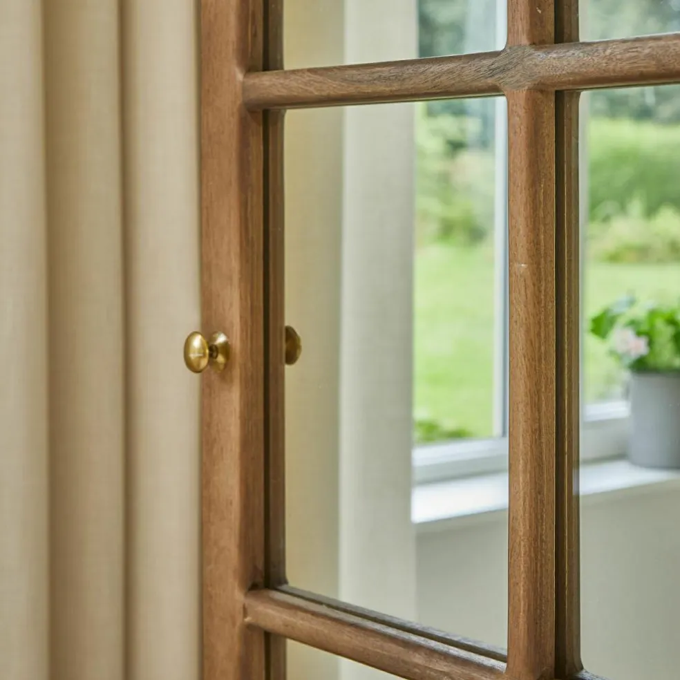 L’armoire se distingue par sa combinaison originale de bois naturel et d’une finition intérieure gris vieilli à l’origine d’un fascinant contraste de couleur. L’armoire de toilette au motif décoratif de fenêtre à croisillons n’est pas seulement très esthétique , elle apporte également un effet d’ouverture lumineux dans chaque pièce. À l’intérieur de l’armoire se trouvent des tablettes pratiques offrant beaucoup de place pour tout un tas d’accessoires. Le panneau arrière à l’effet planches confère à l’espace intérieur de l’armoire du style et du caractère. Dans le salon, la chambre à coucher ou le couloir : cette armoire à miroir est un meuble fonctionnel et décoratif qui trouvera sa place dans chaque pièce.