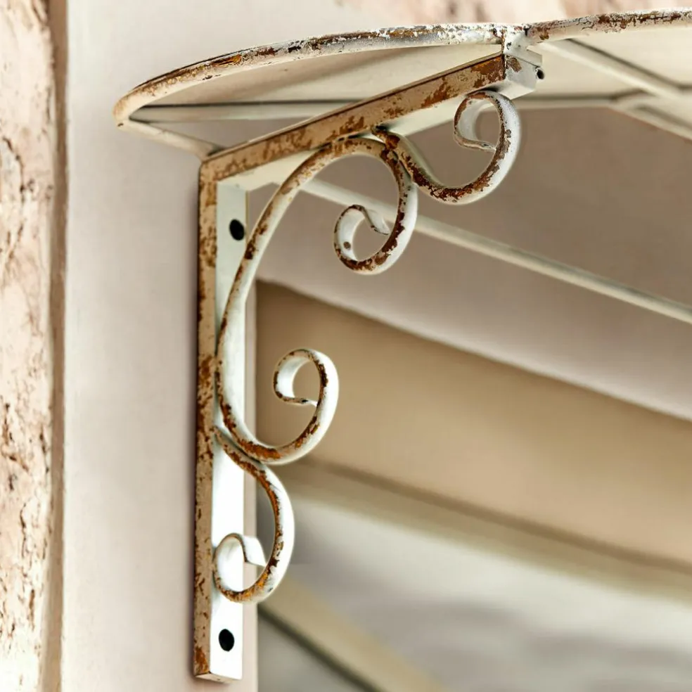 Cet auvent allie nostalgie et fonctionnalité de manière incomparable. Les fins ornements et les supports délicatement incurvés dégagent une atmosphère romantique intemporelle qui rappelle les maisons de campagne d’antan. La couleur blanc vielli, combinée à un bel aspect rouillé, assure un look vintage authentique qui met en valeur chaque intérieur. Confectionné en fer résistant aux intempéries, l’auvent offre une protection contre la pluie et le soleil tout en restant un ajout élégant à votre façade. Un détail unique qui allie harmonieusement fonctionnalité et esthétique.