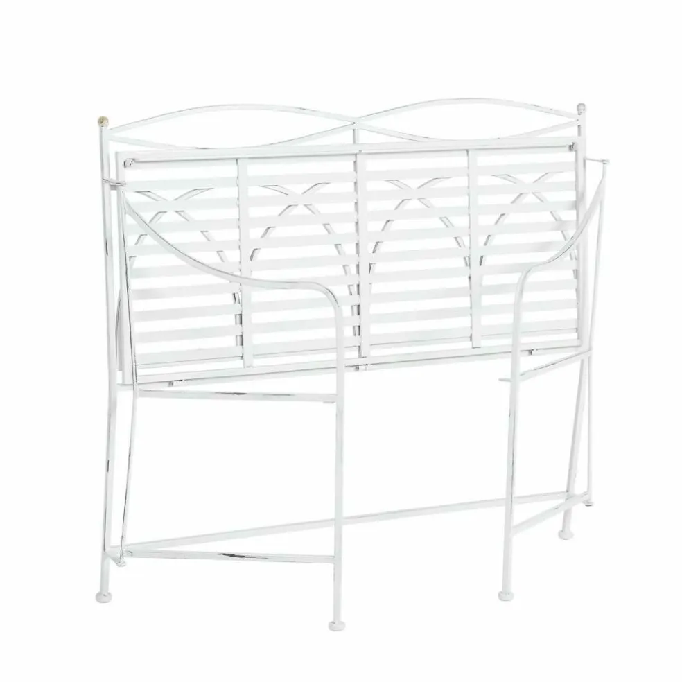 Ce banc en fer forgé embellit les balcons, jardins et terrasses. Les motifs raffinés et élancés offrent un aspect d’Art Nouveau très séduisant. Le design élégant mais discret s’intègre parfaitement à tous les extérieur et l’aspect vieilli de la structure témoigne du savoir-faire artisanal. Ce joli banc se plie en quelques minutes et peut ainsi être rangé à tout moment pour gagner de la place. Très léger, il peut aussi facilement être déplacé.